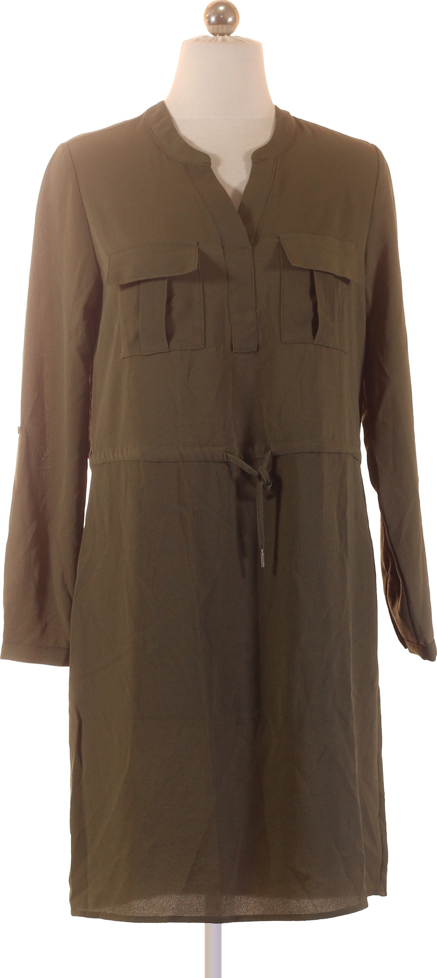 ONLY dámské šaty khaki s dlouhým rukávem košilové volnočasové s páskem Velikost 34