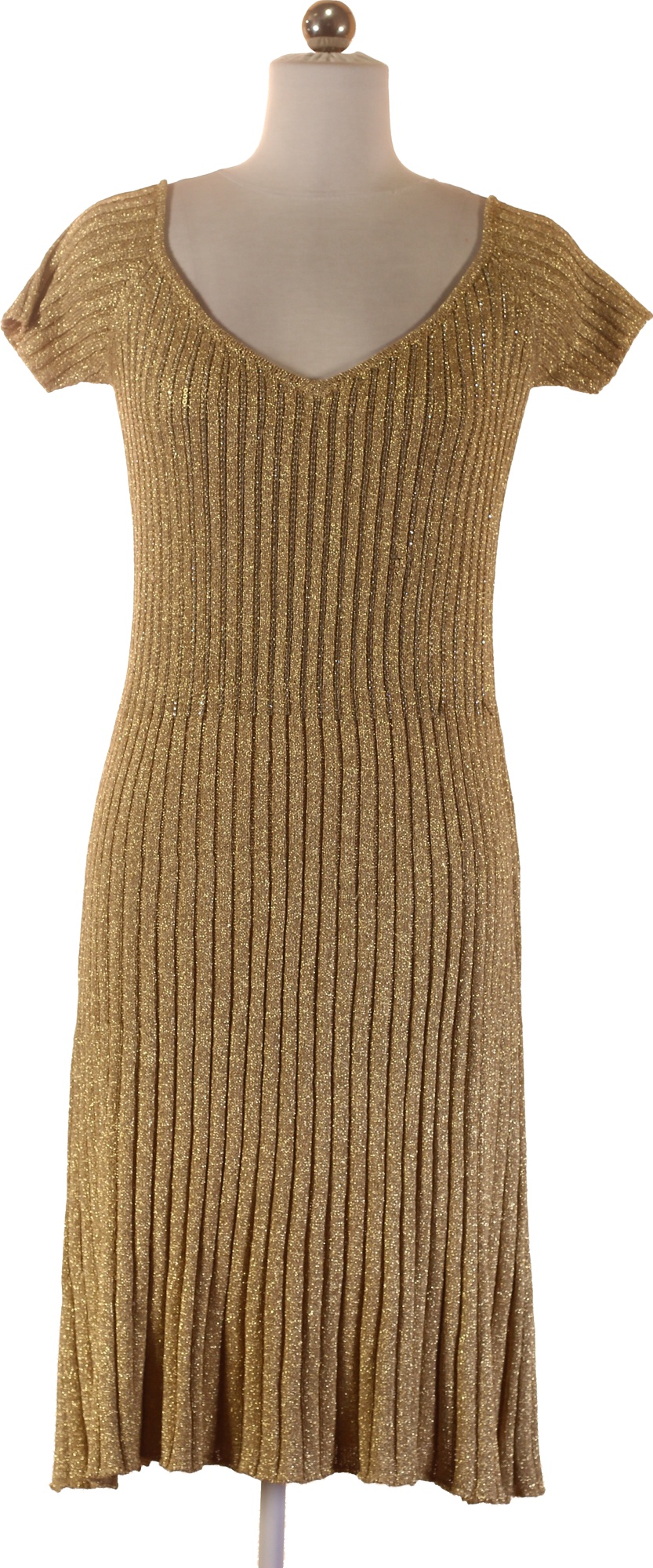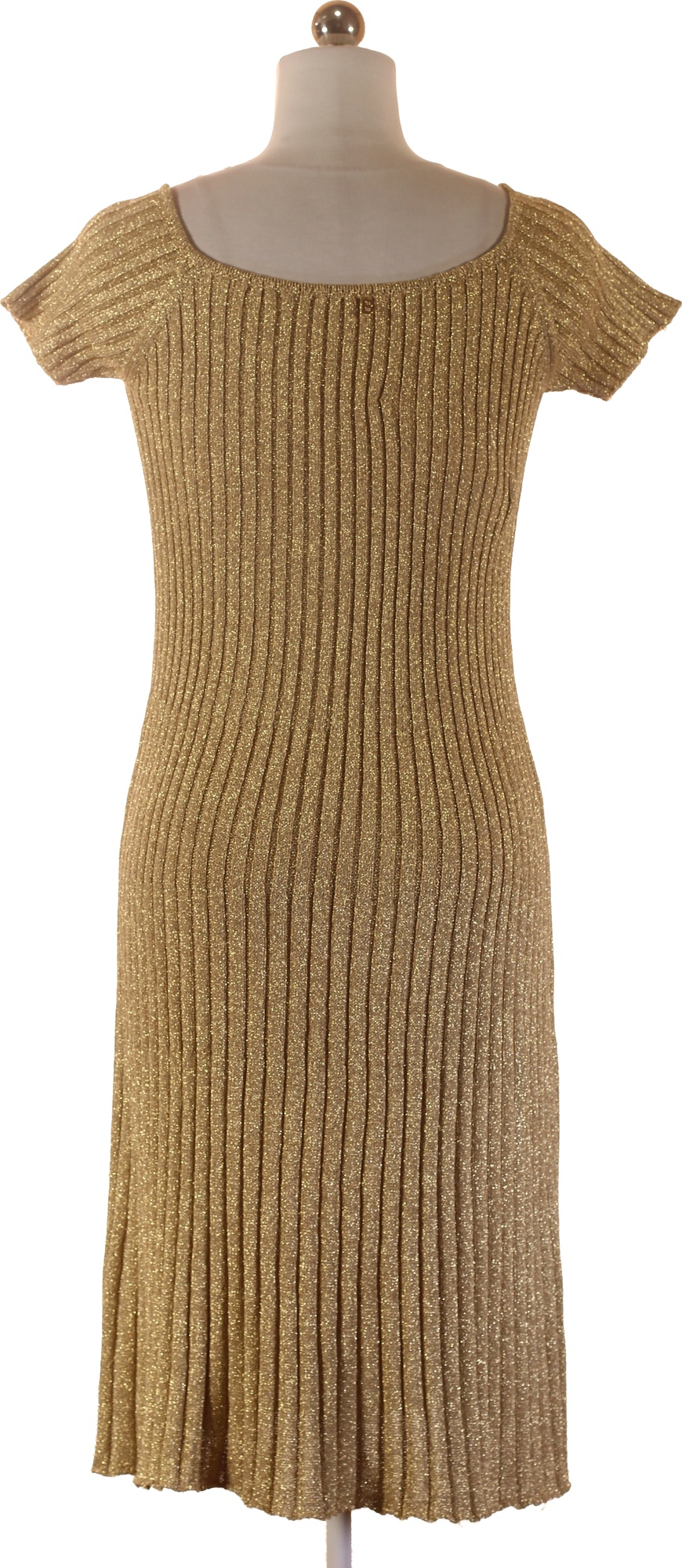 Zlaté třpytivé pletené šaty midi Vel. XS