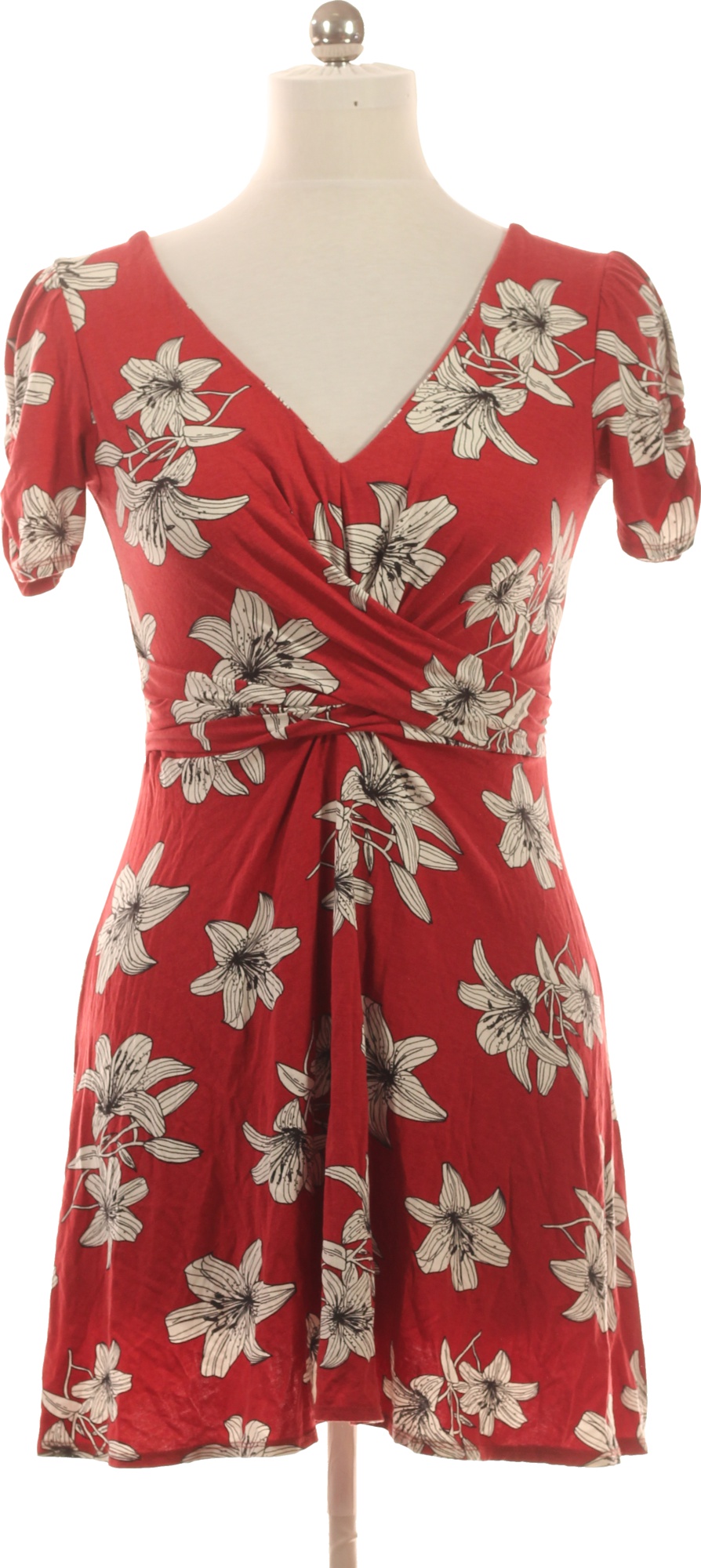 River Island Dámské šaty červené květované zavinovací krátké letní Velikost 38