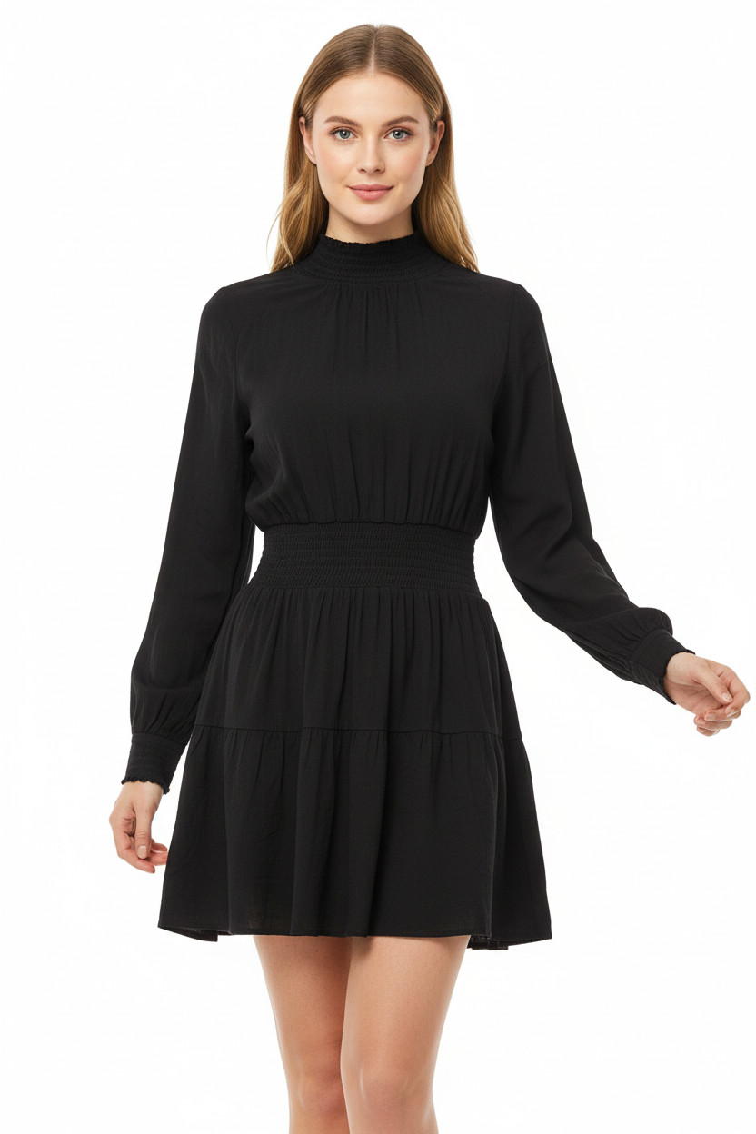Černé mini šaty se stojáčkem a dlouhým rukávem Velikost M