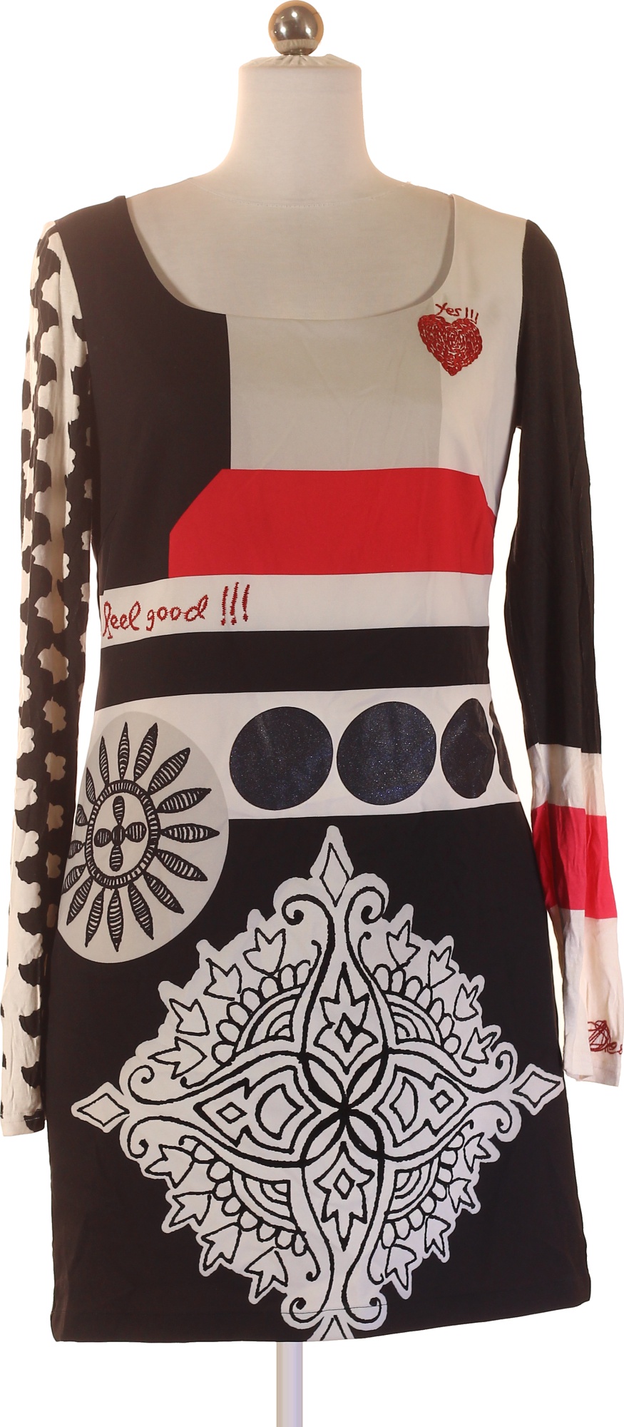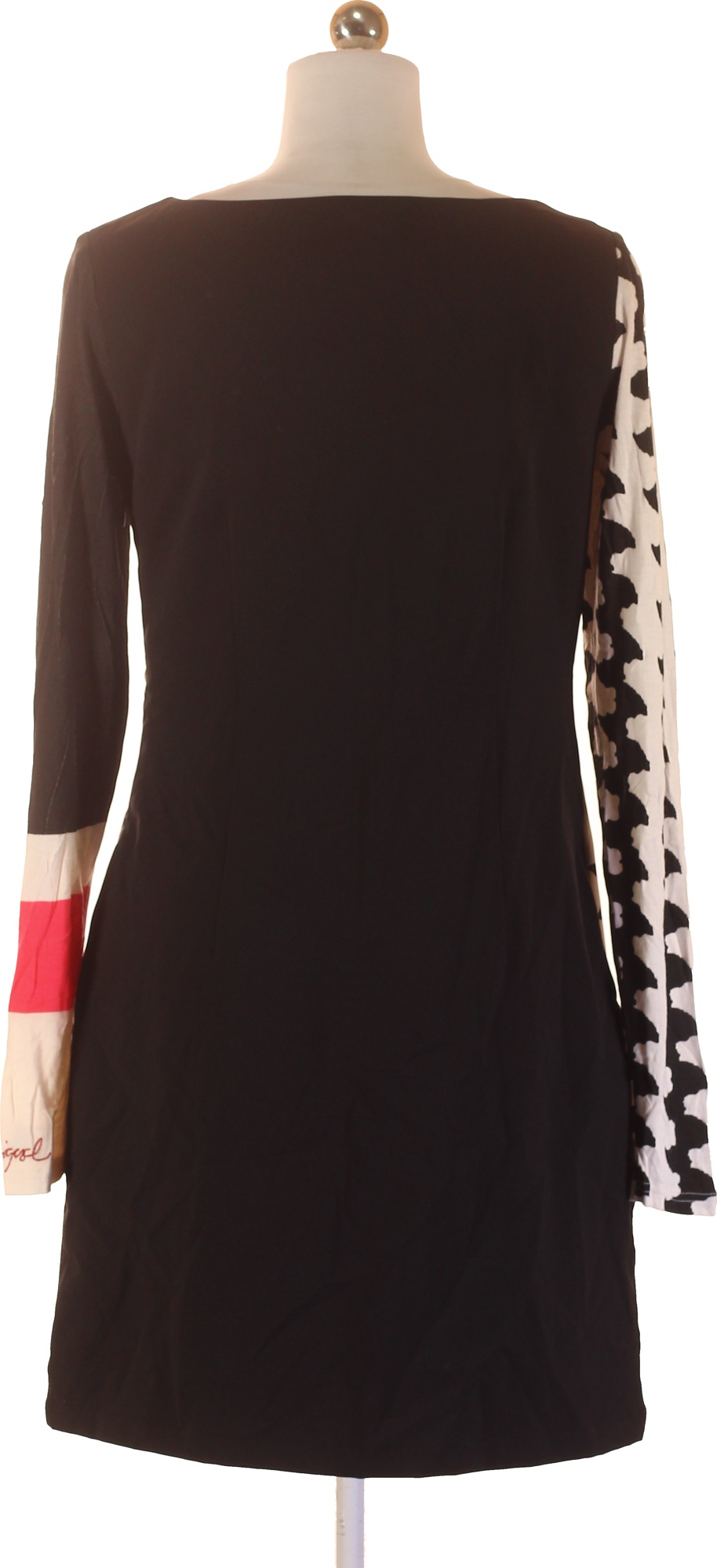 DESIGUAL Černobílé pouzdrové šaty s dlouhým rukávem a potiskem Vel. 38