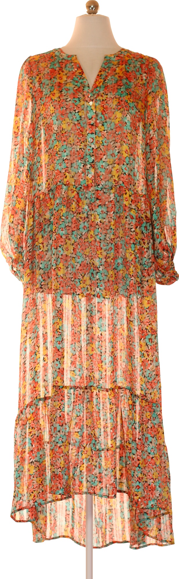 ILSE JACOBSEN Dámské šaty dlouhé květované s dlouhým rukávem boho Velikost 38