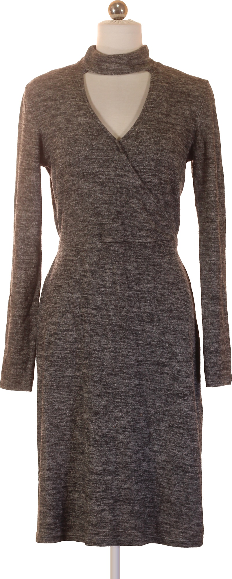 Next Dámské viskózové šedé pletené zavinovací šaty s dlouhým rukávem Vel. 38
