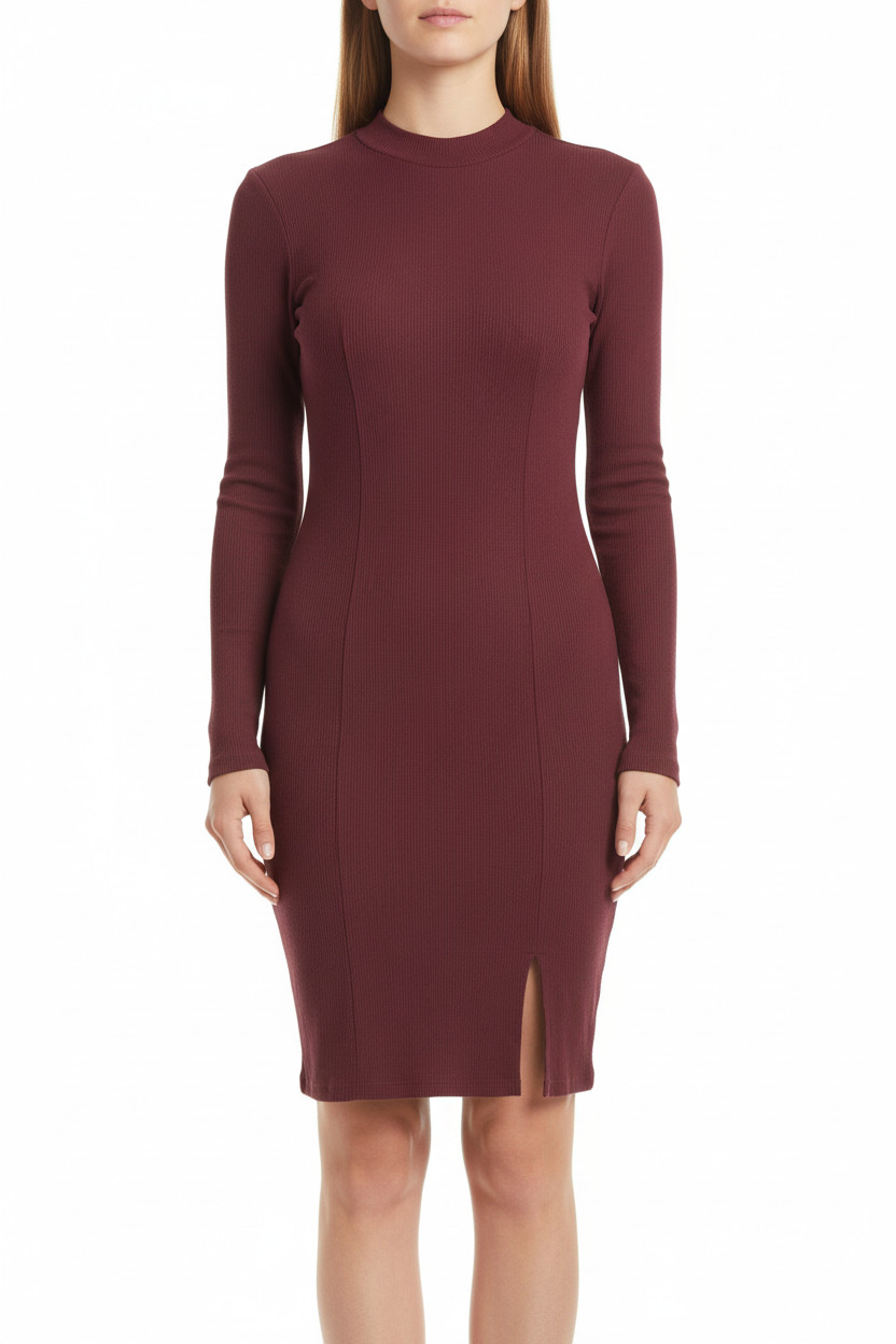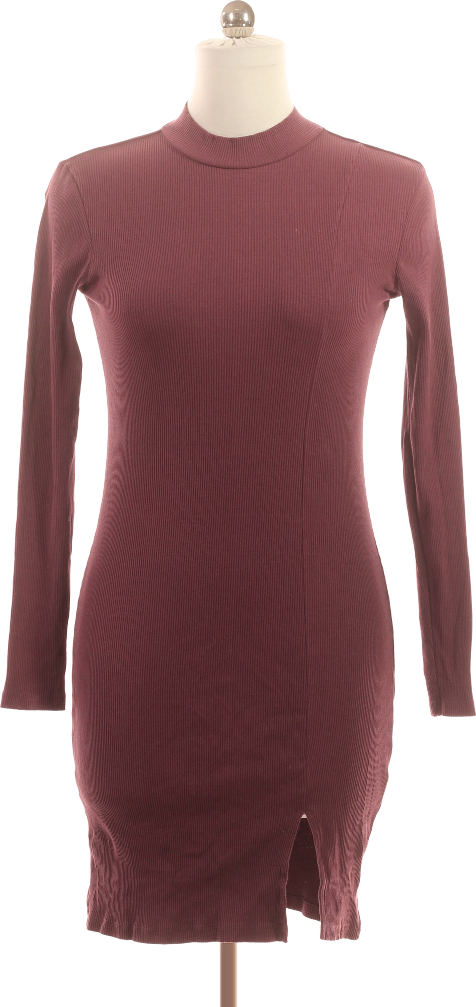sinsay Dámské upnuté žebrované mini šaty s rozparkem vínové Velikost L