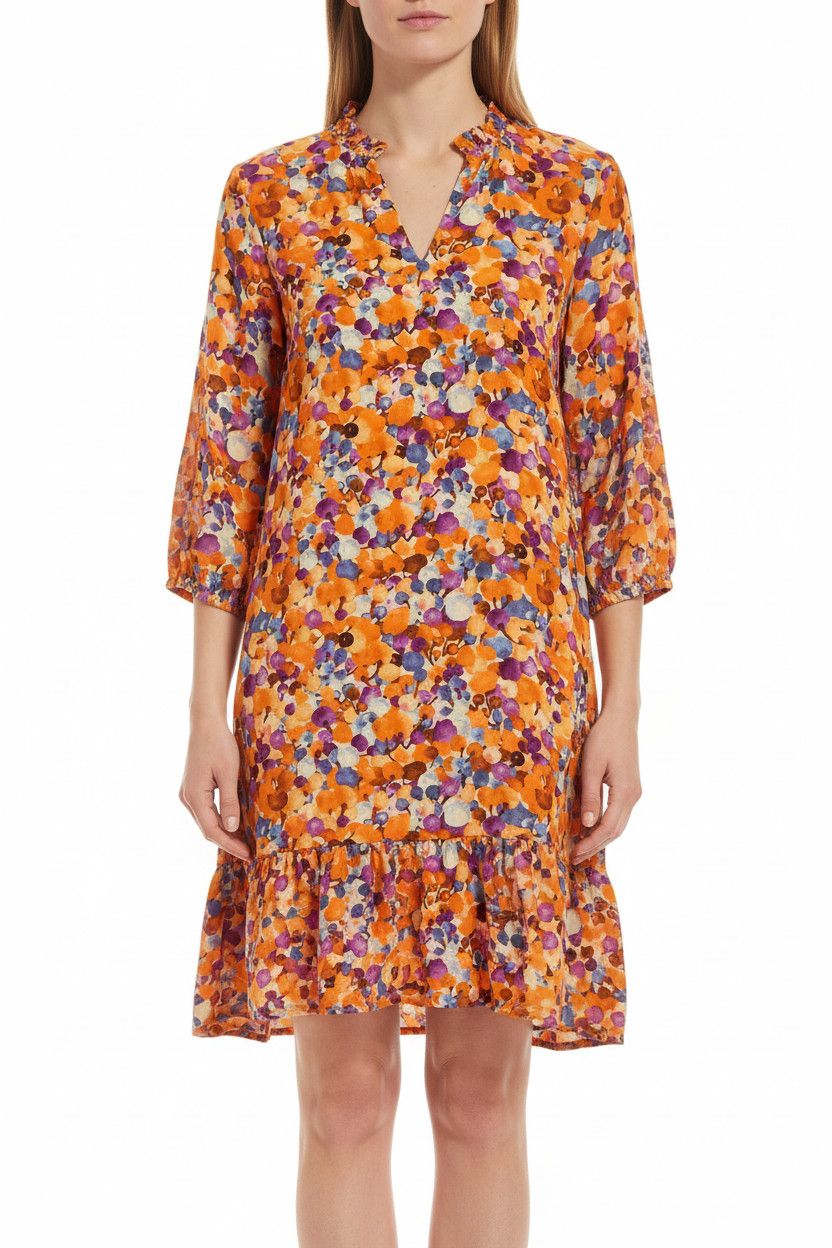 BRAVE SOUL Dámské šaty s krátkým rukávem květované volnočasové oranžové Vel. 36
