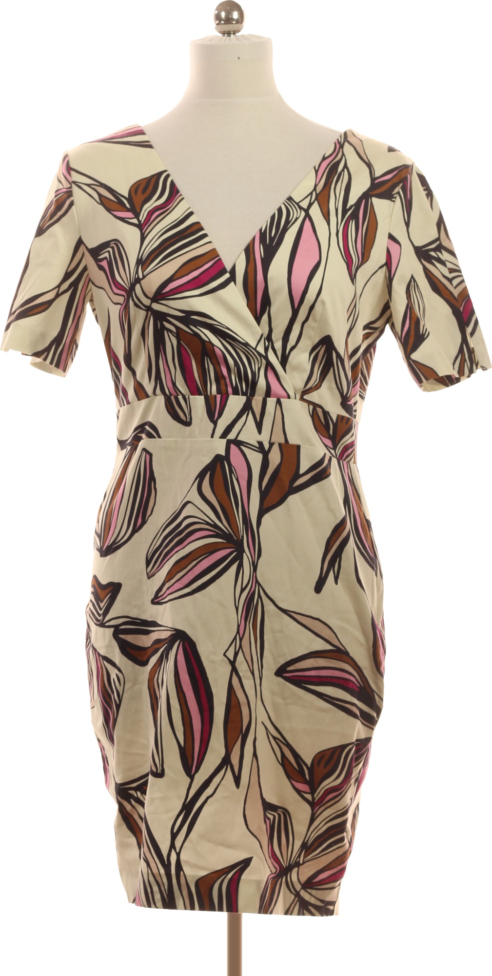 COMMA Béžové květované šaty s krátkým rukávem zavinovací Velikost 38