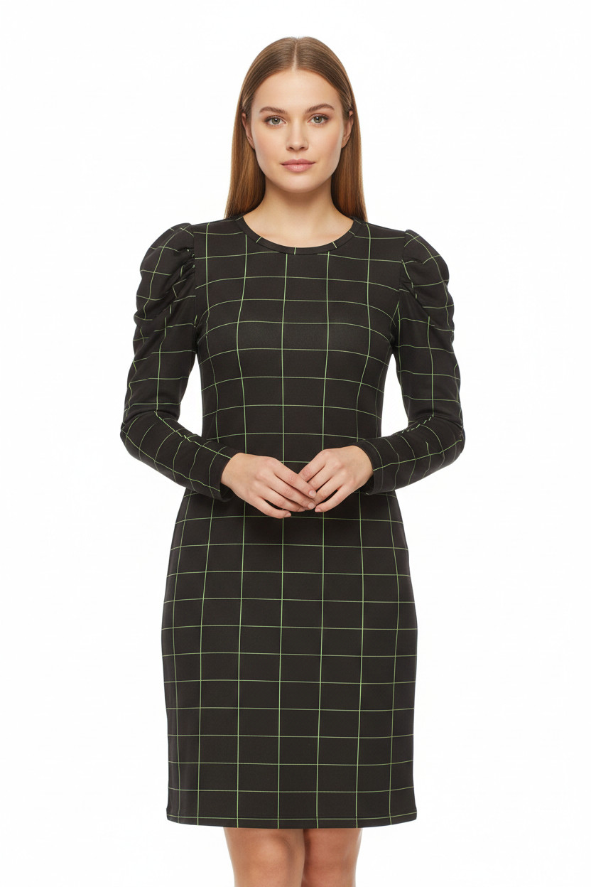 dámské pouzdrové šaty s dlouhým rukávem kostkované volnočasové Velikost S