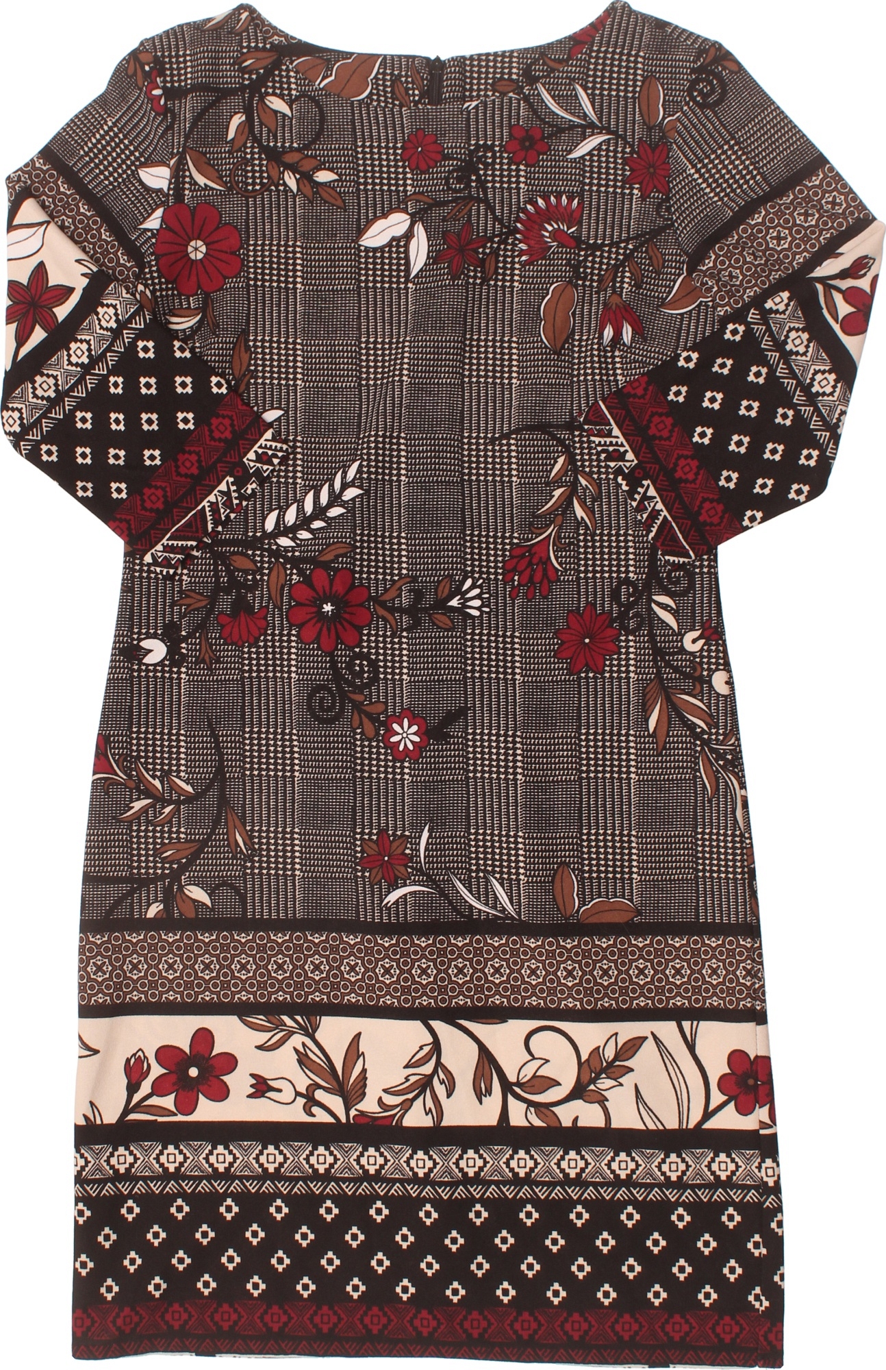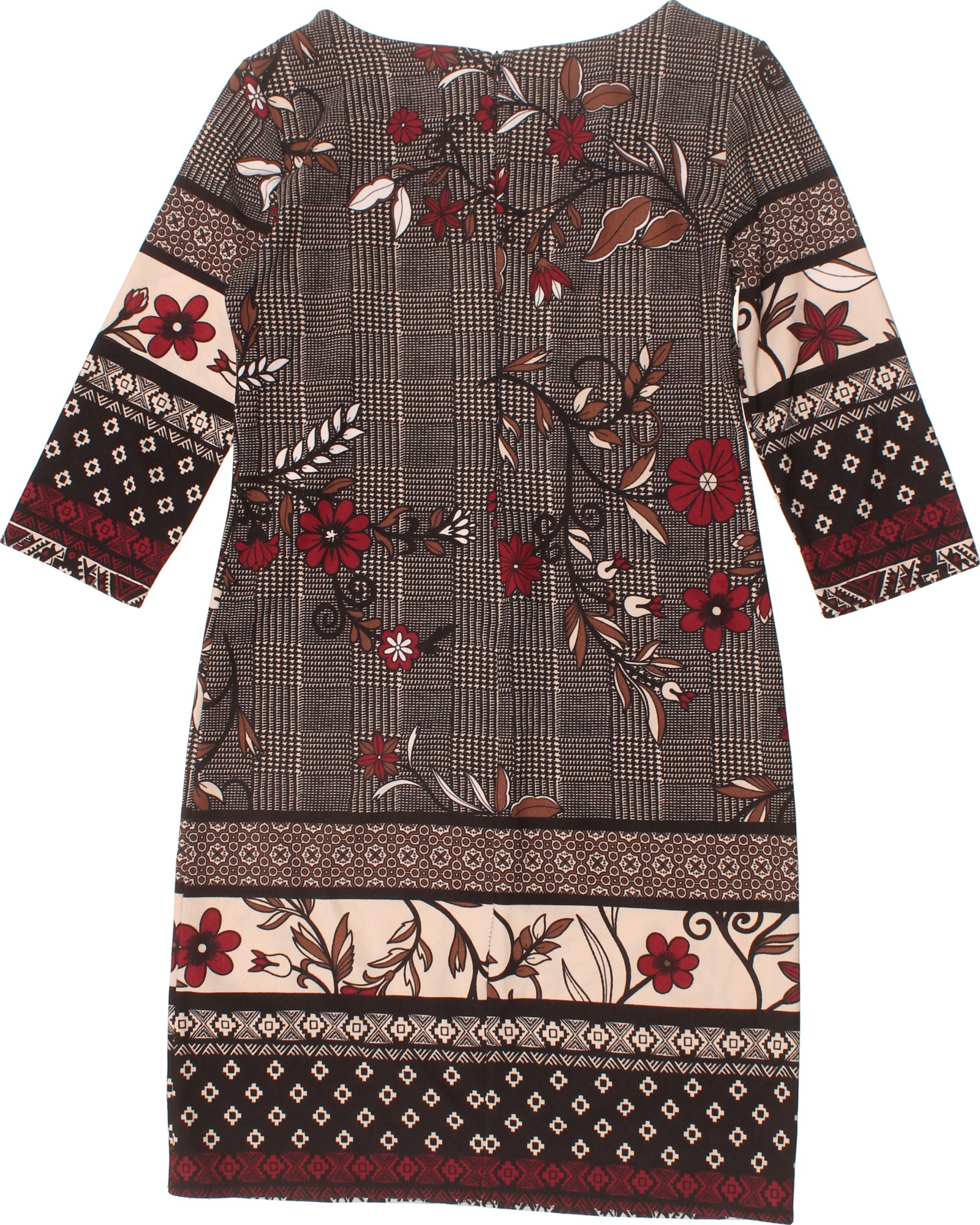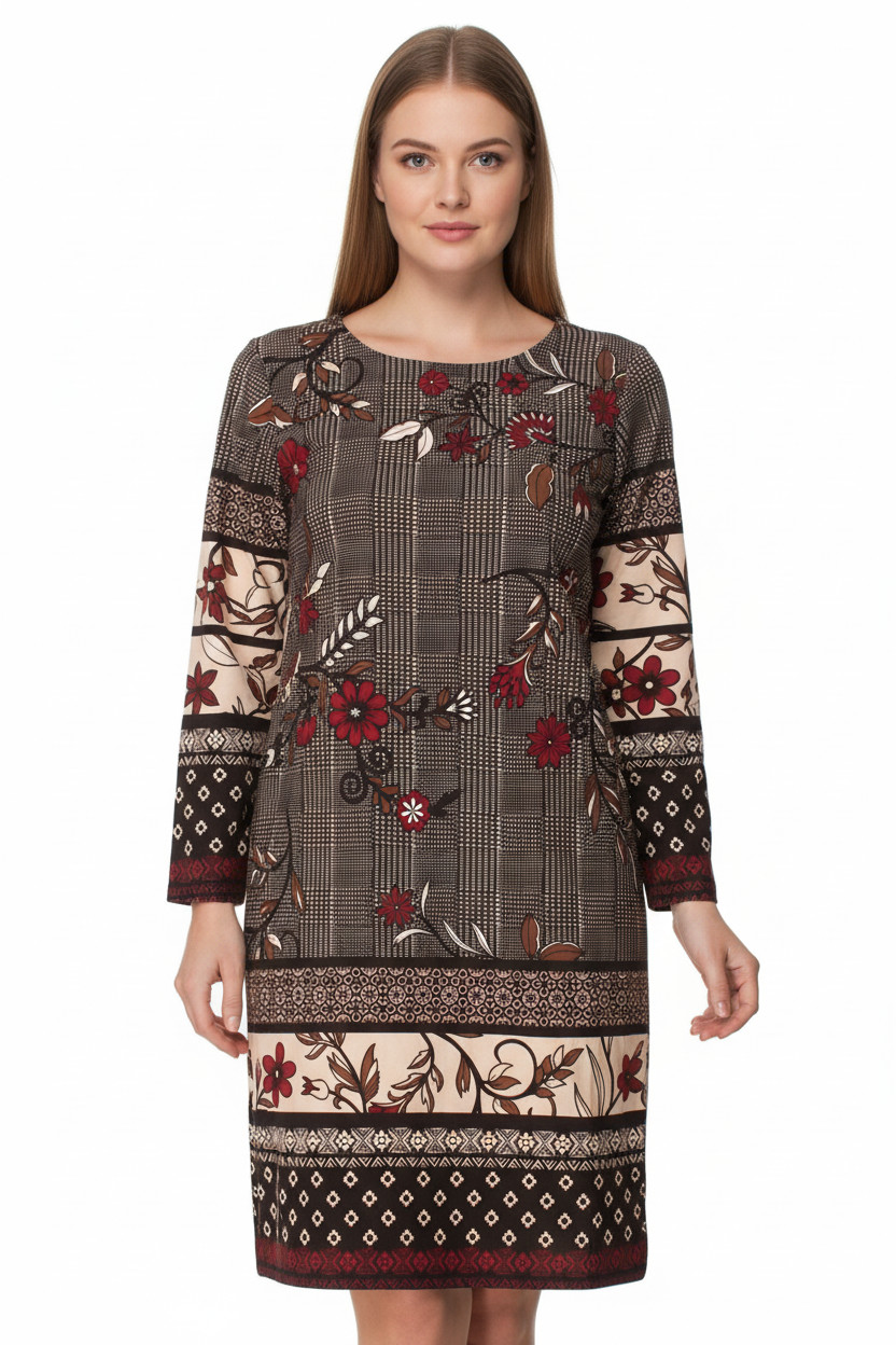 Dámské šaty s krátkým rukávem kostkované květované hnědé béžové Velikost M