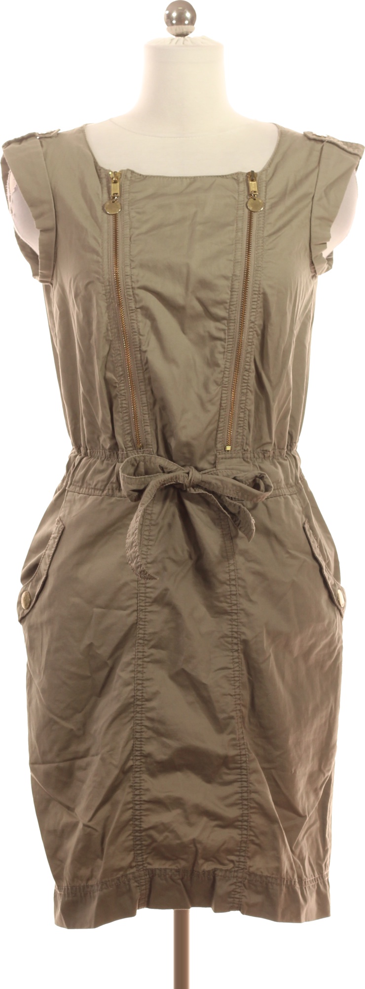 InWear Khaki dámské šaty safari styl se zipy a stahováním v pase Velikost M