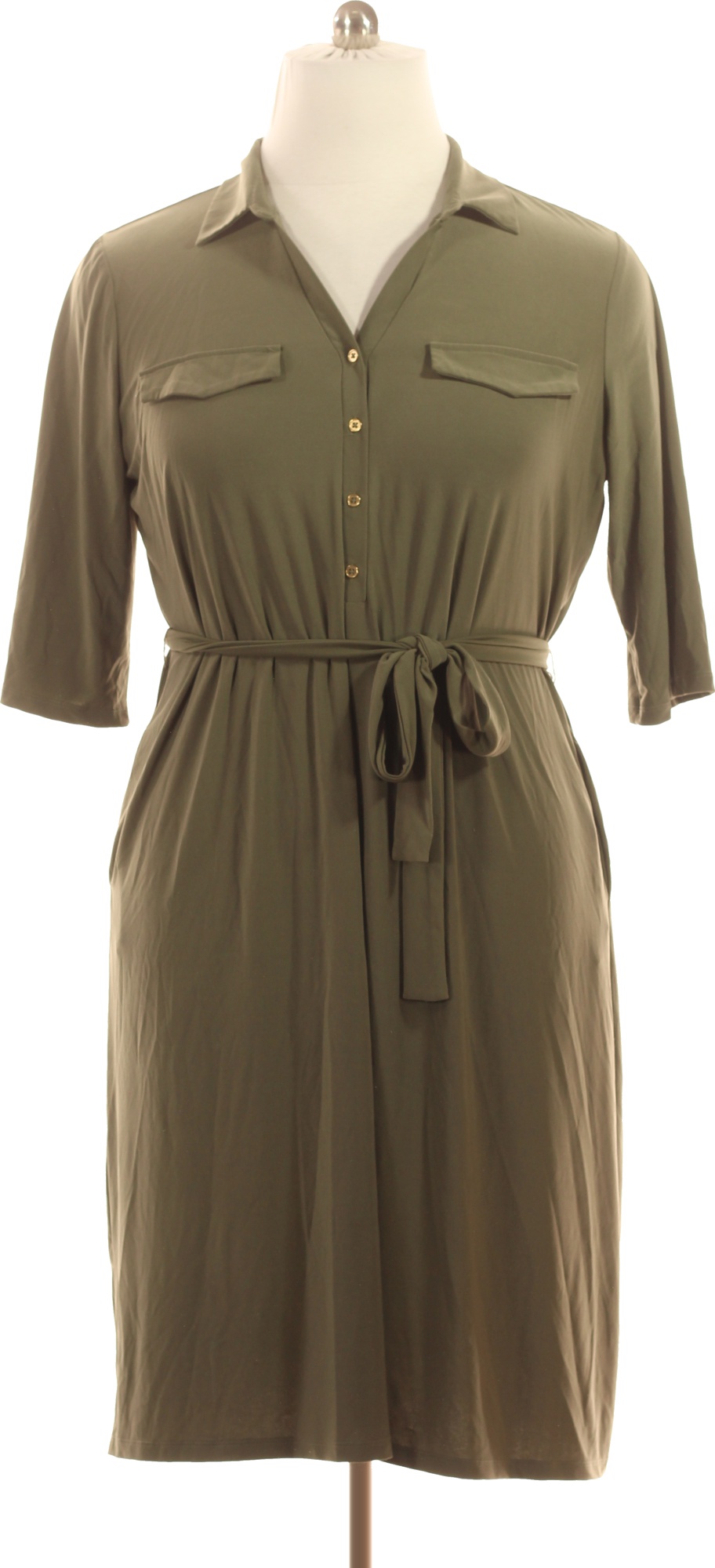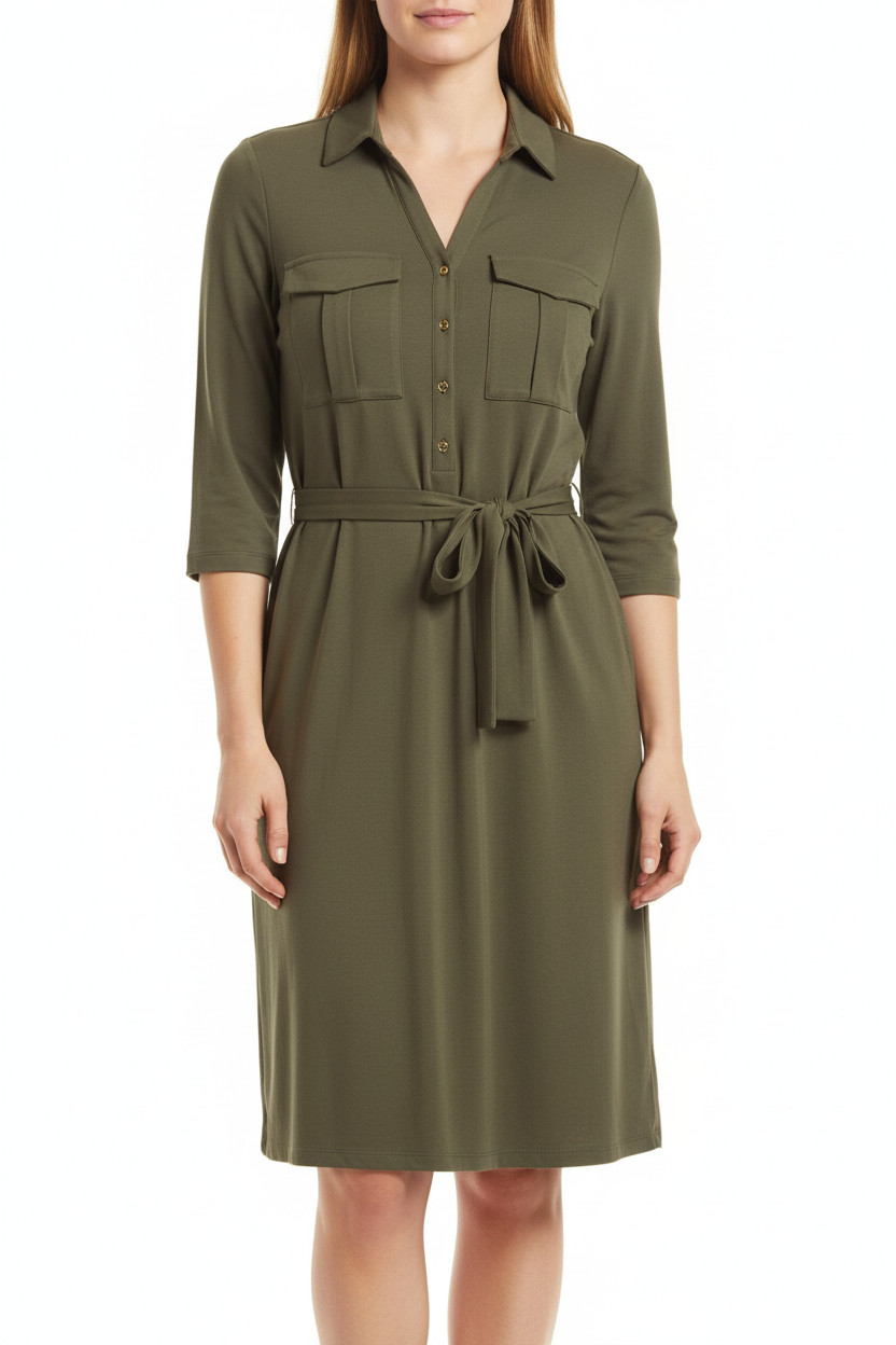 MILANO khaki košilové šaty s páskem a kapsami Velikost 46