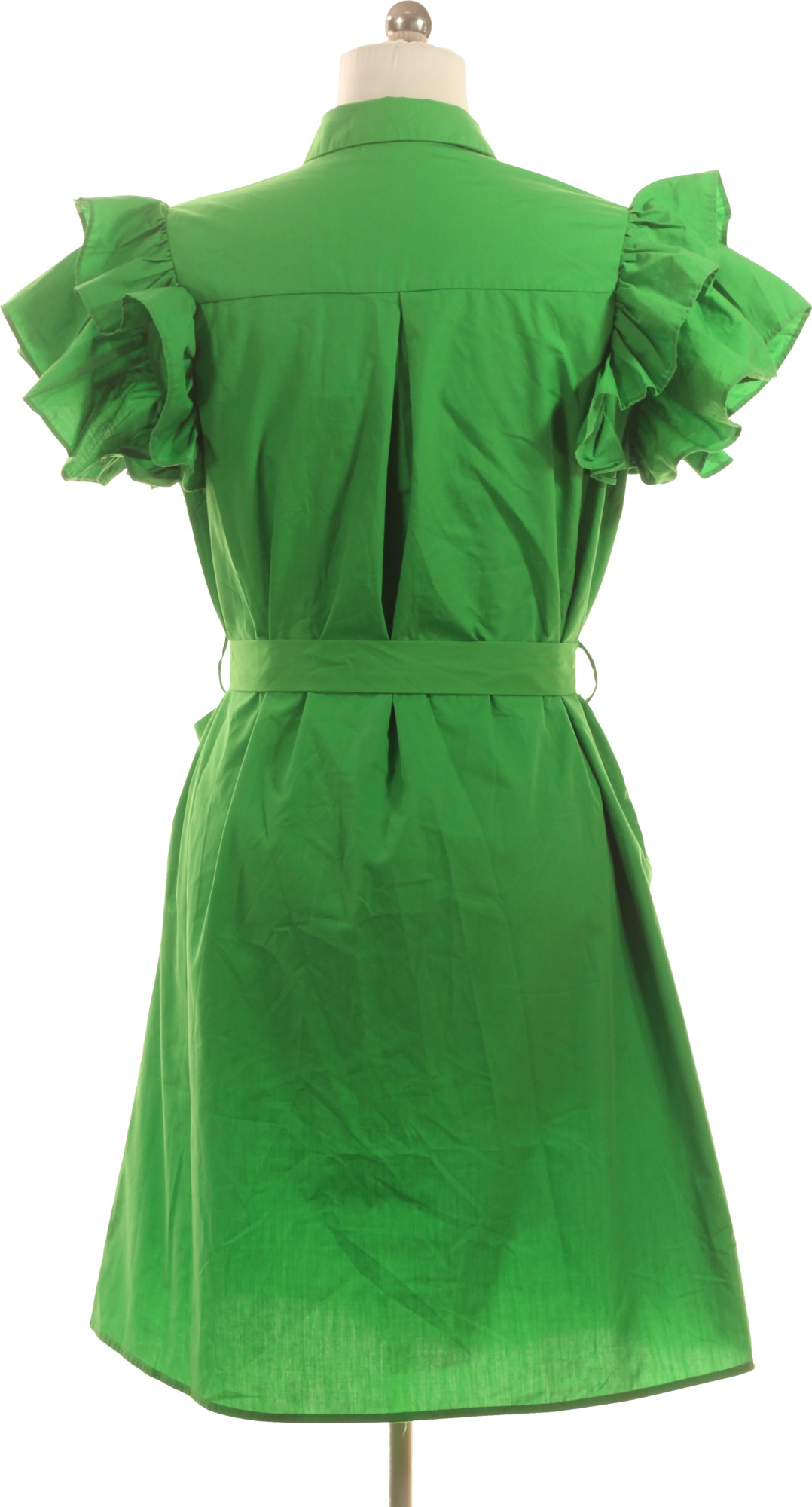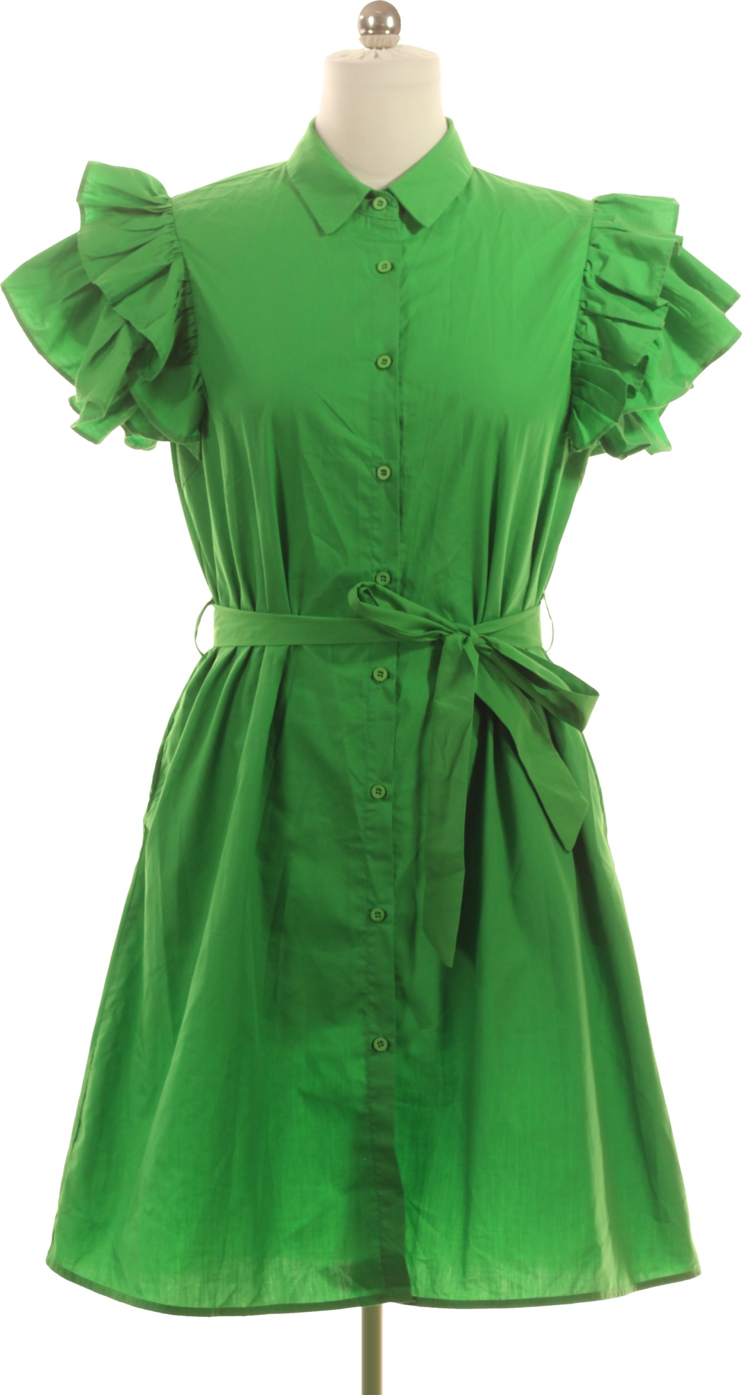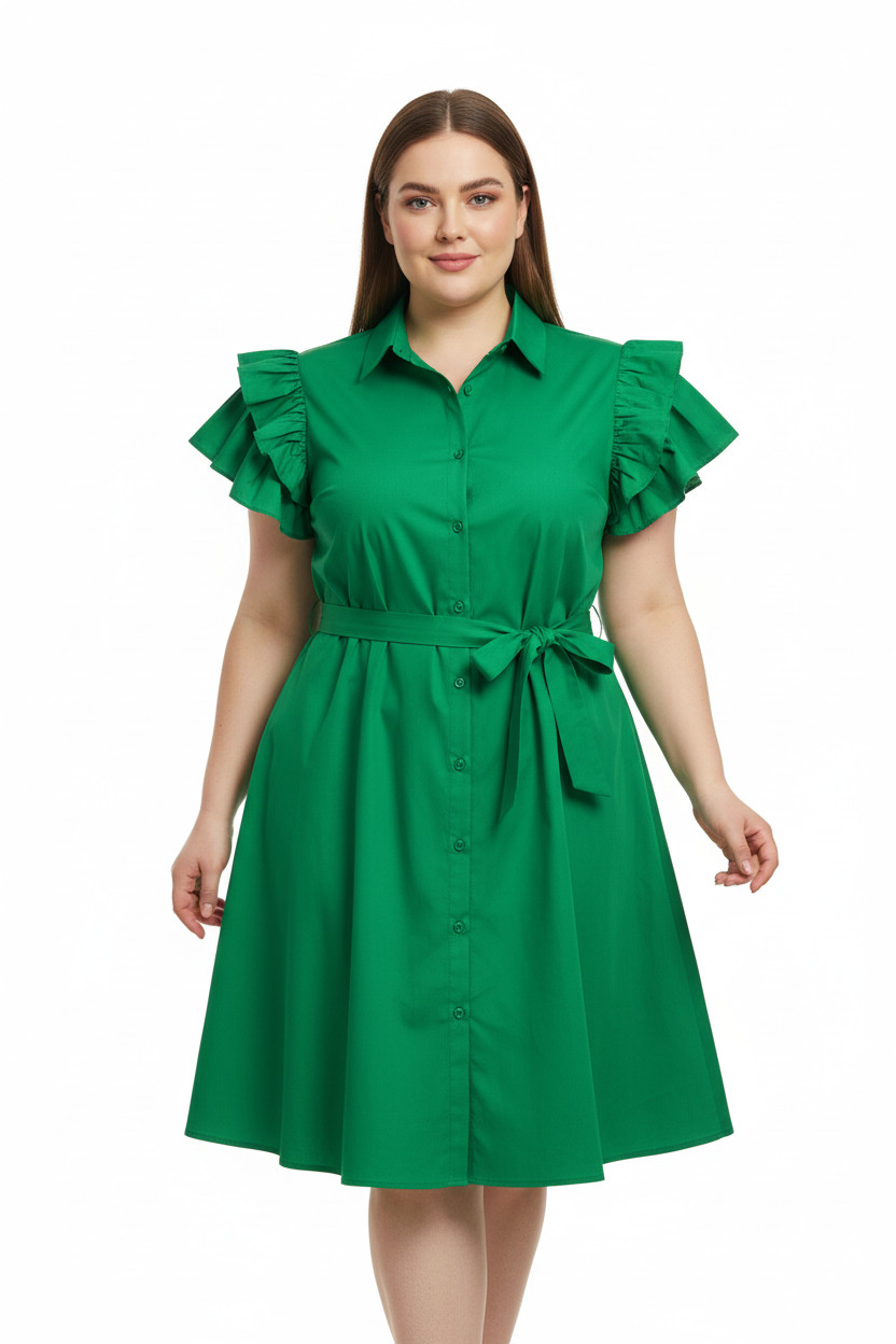 monte cervino Zelené bavlněné košilové šaty mini s volánem a páskem Velikost XL