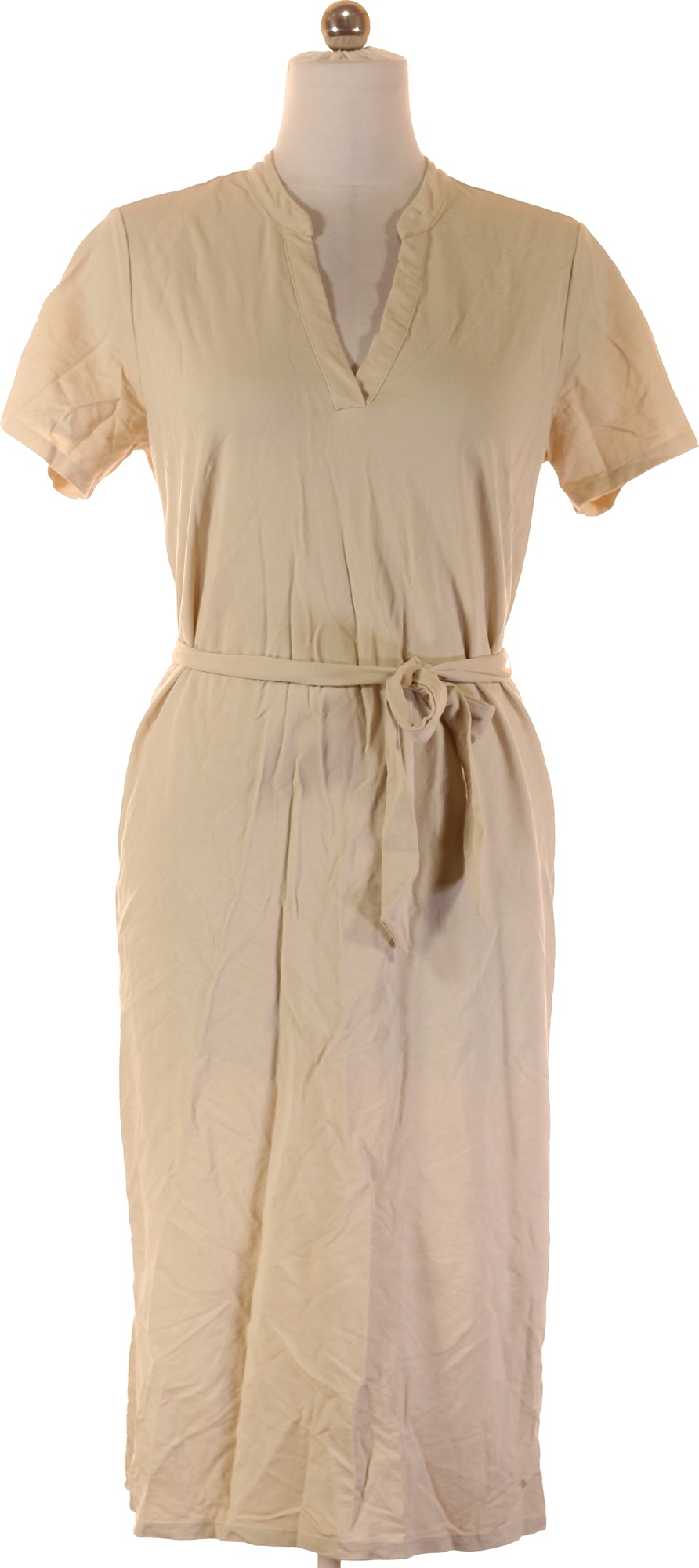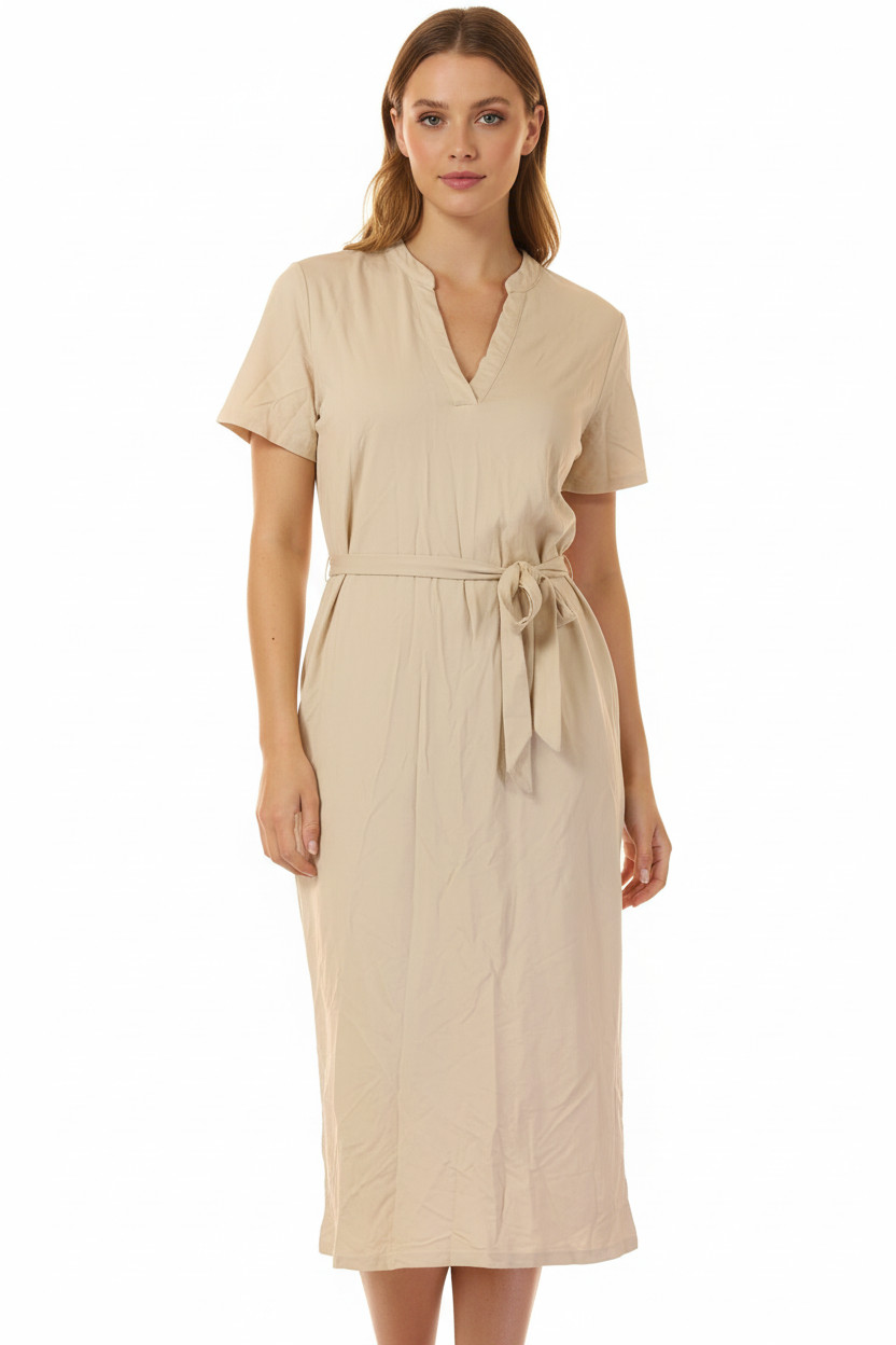 VERO MODA Dámské béžové letní šaty midi tričkové s páskem jednoduché denní Velikost L