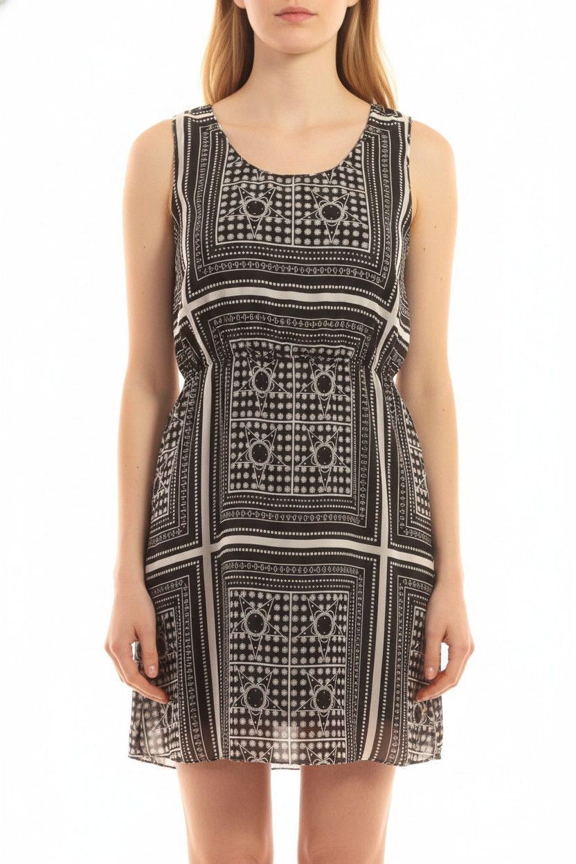 SAMSOE Dámské šaty bez rukávů černé s potiskem volnočasové letní Velikost M