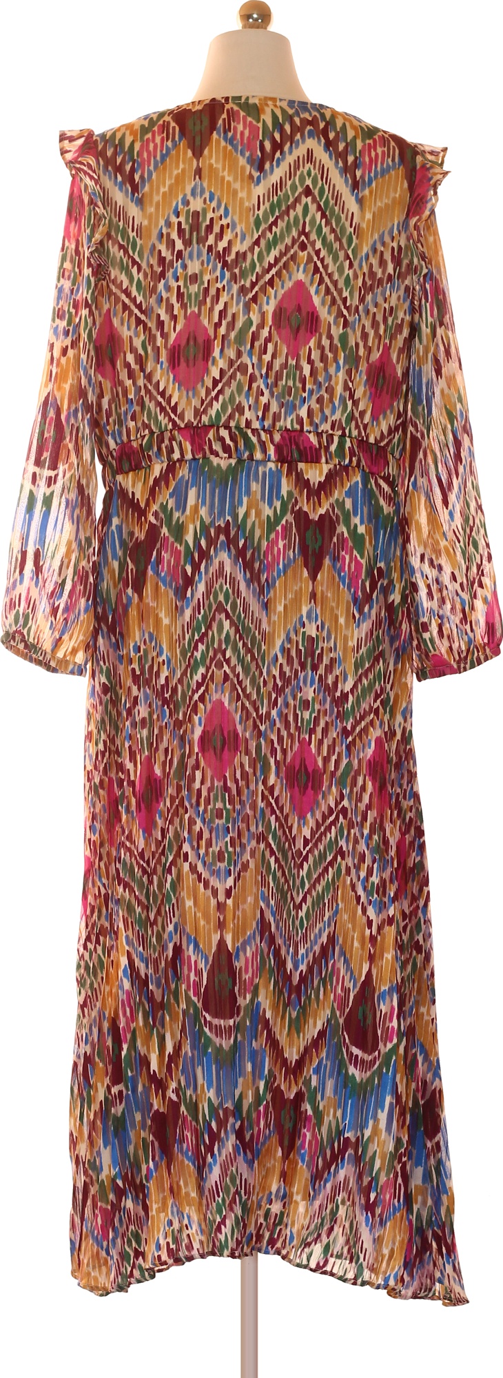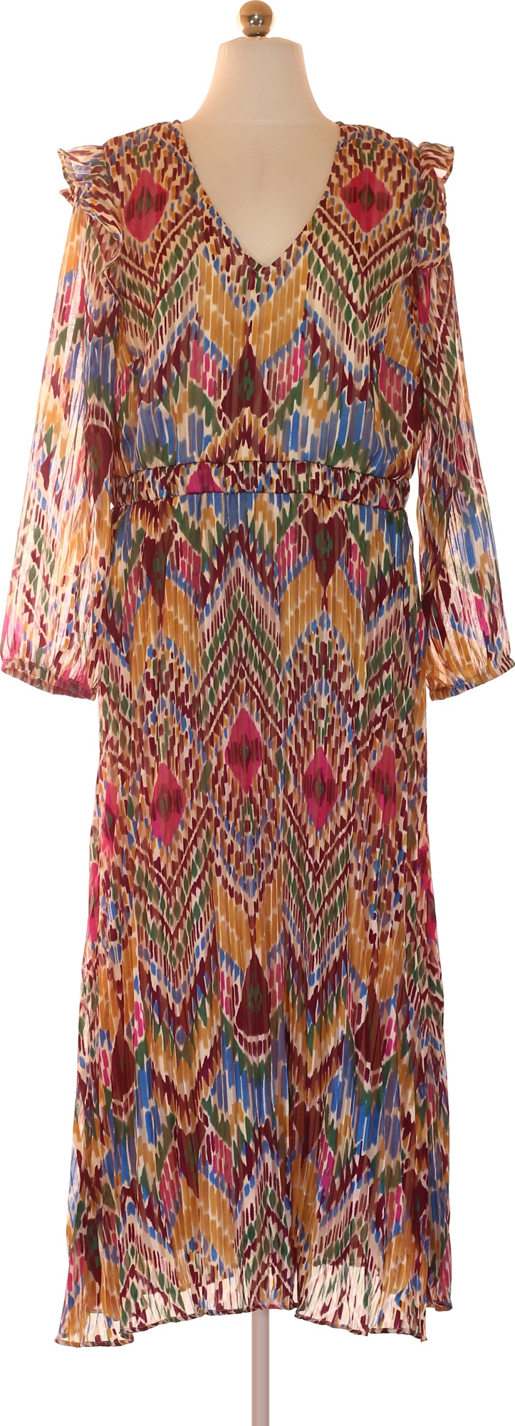 Lascana Dlouhé polyesterové šaty s dlouhým rukávem midi plisované barevné ikat Vel. 44