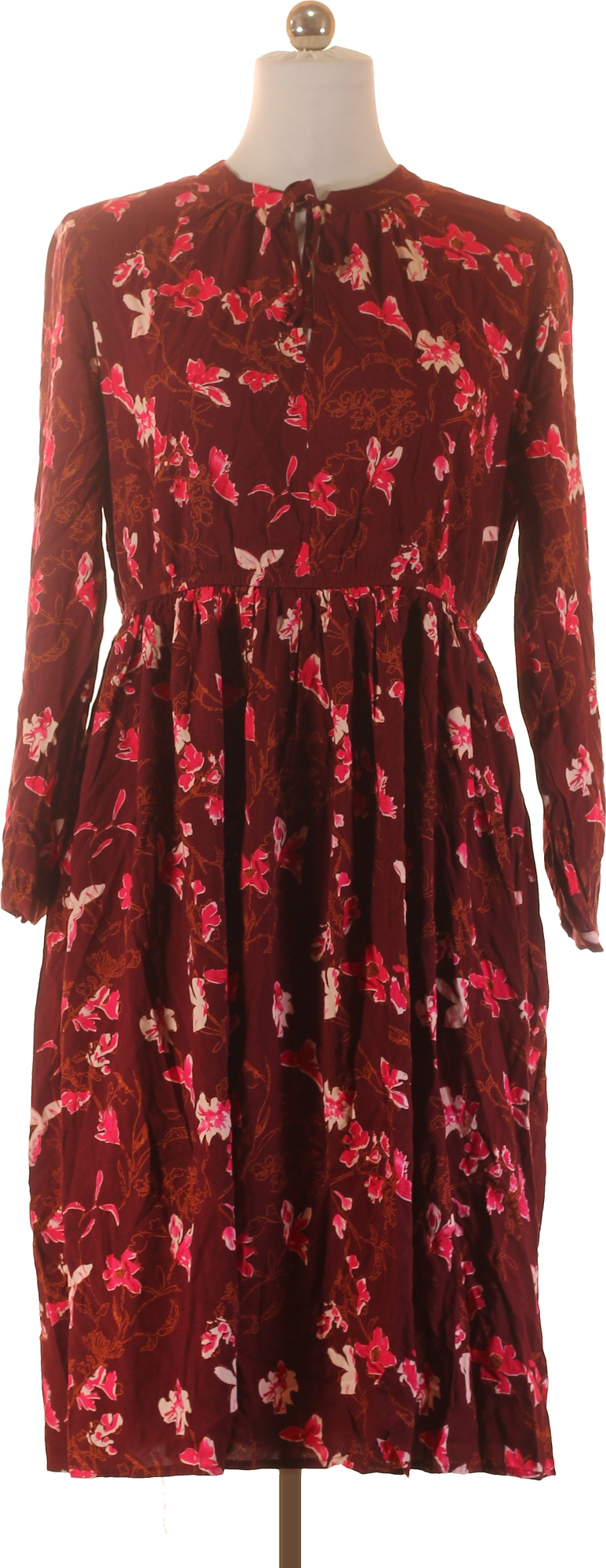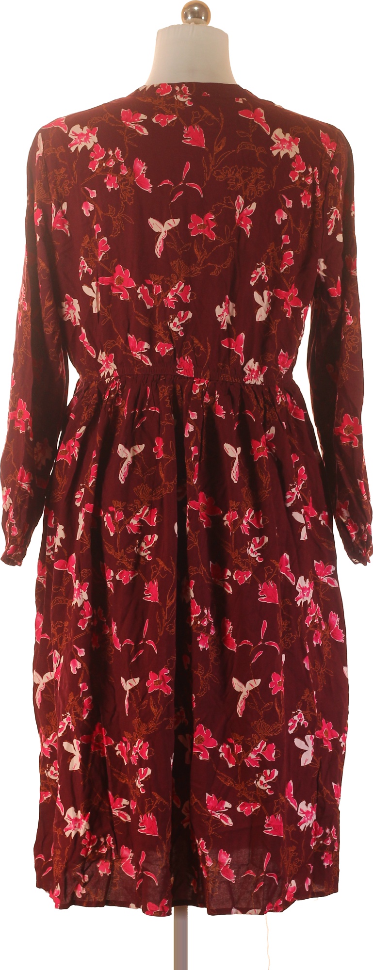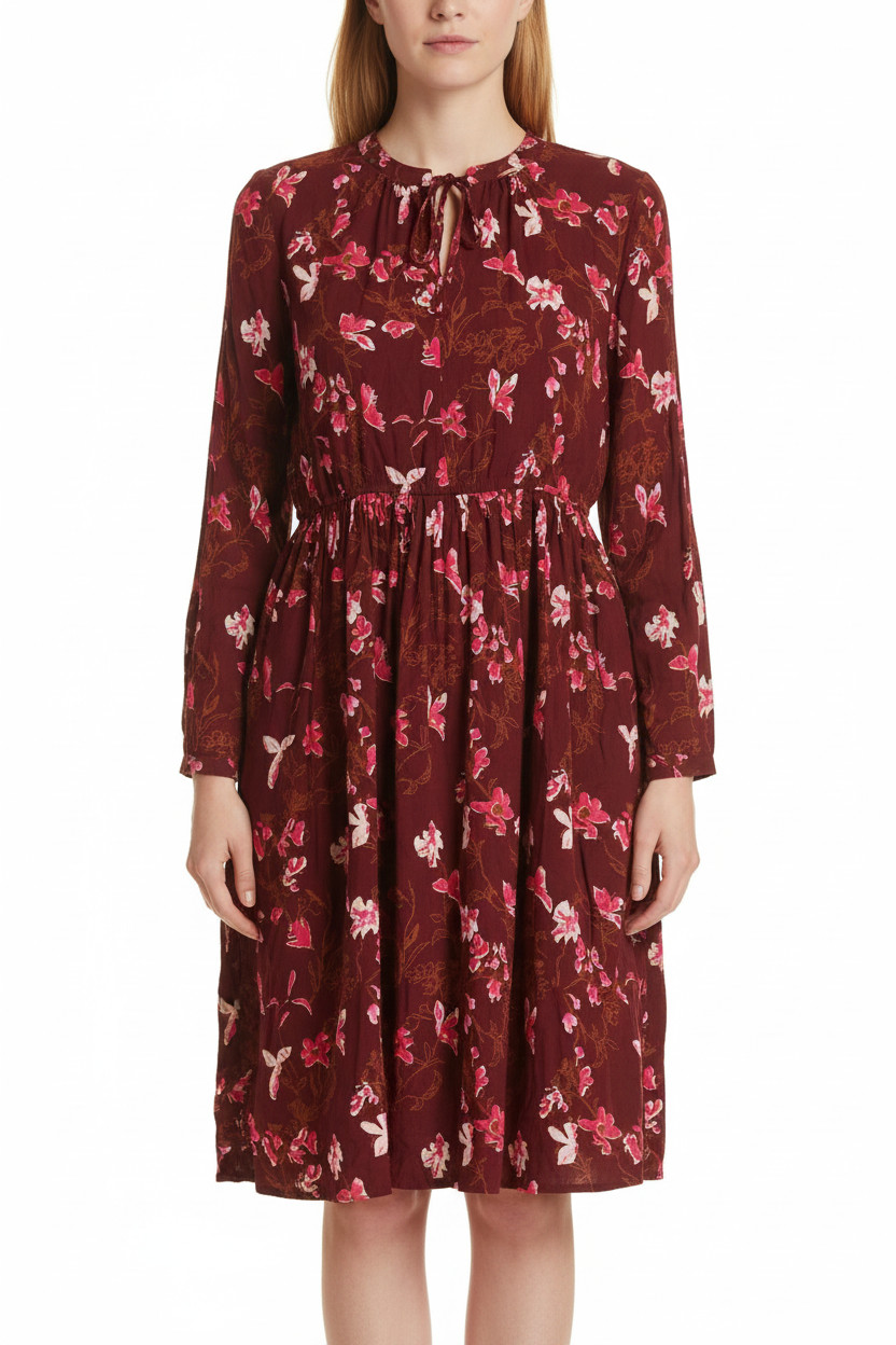 LAWRENCE GREY Dámské vínové viskózové květované šaty midi s dlouhým rukávem volné Vel. 42