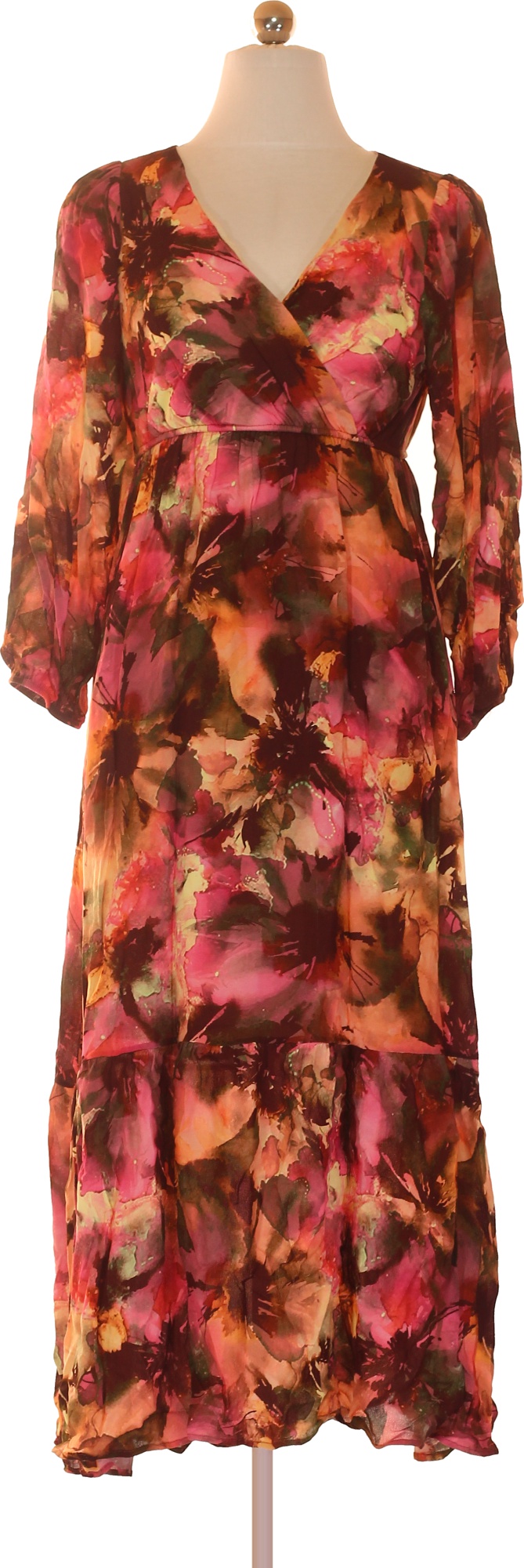 LAWRENCE GREY Viskózové zavinovací maxi šaty s dlouhým rukávem květované volné boho Velikost 38