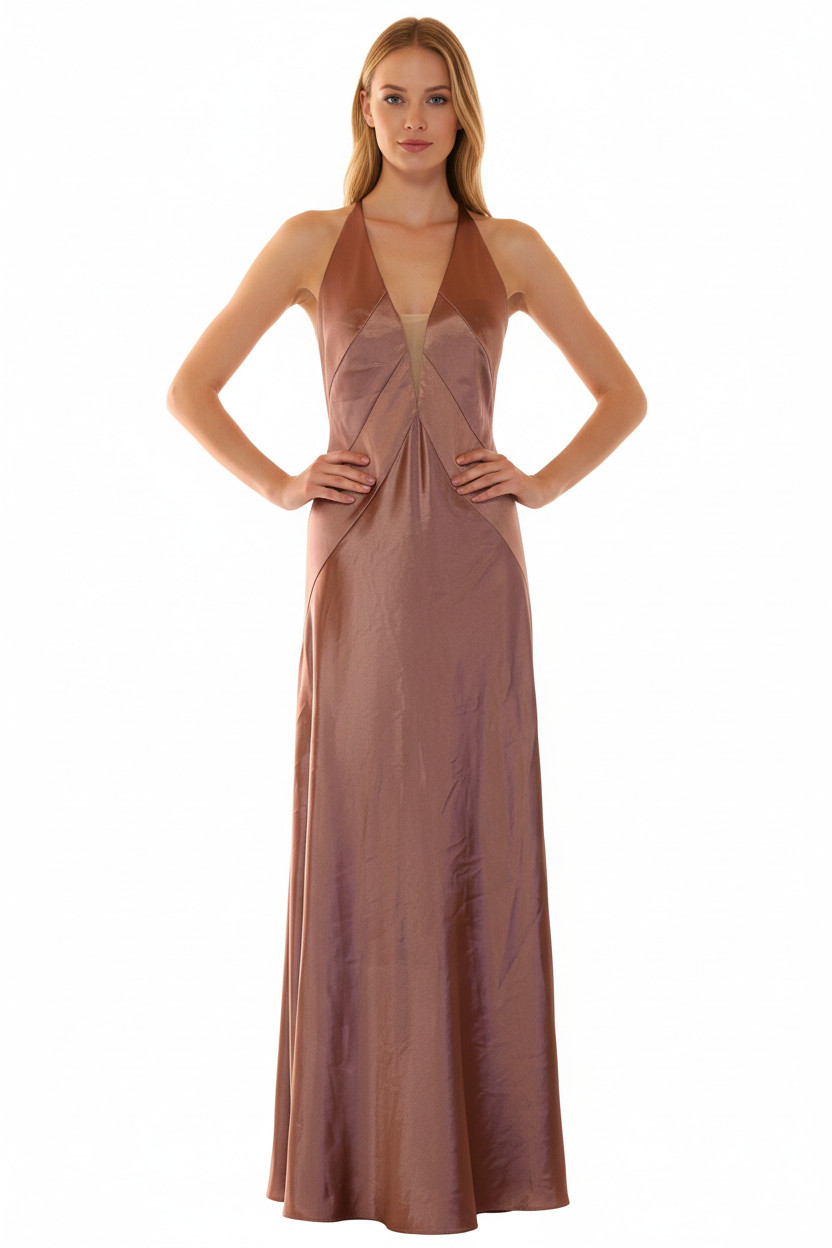 VERO MODA Dlouhé saténové večerní šaty za krk s hlubokým výstřihem Vel. S