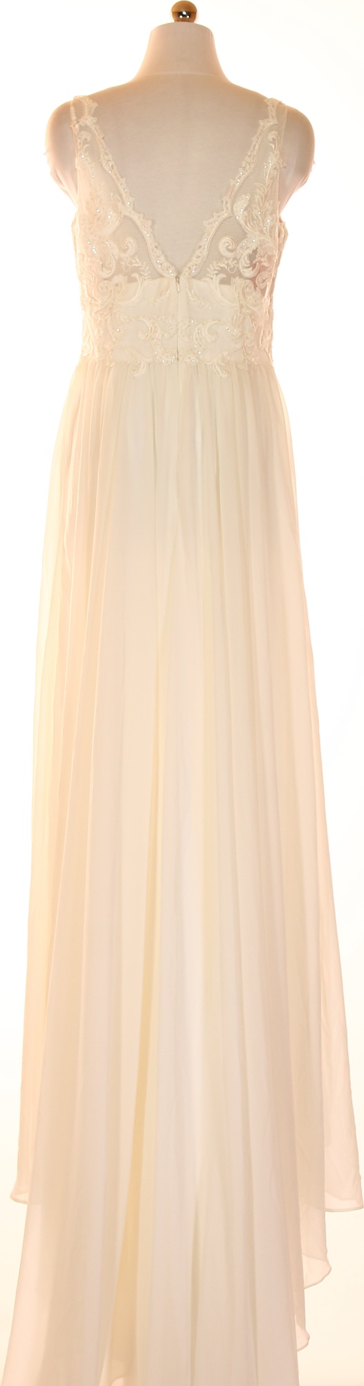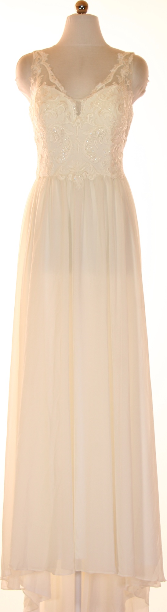STAR NIGHT Dámské krémové dlouhé šaty na ramínka krajkové šifonové svatební Vel. 40
