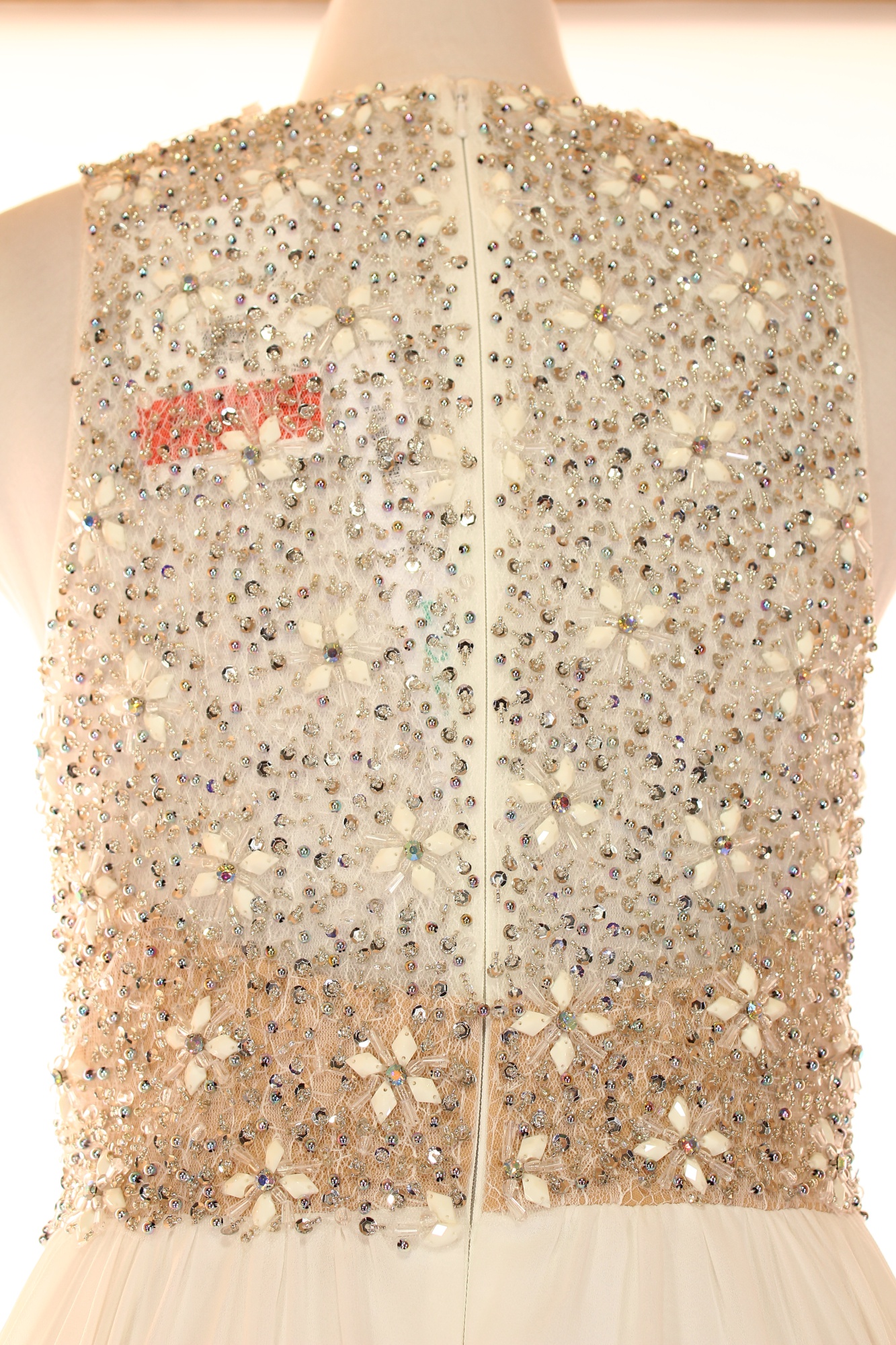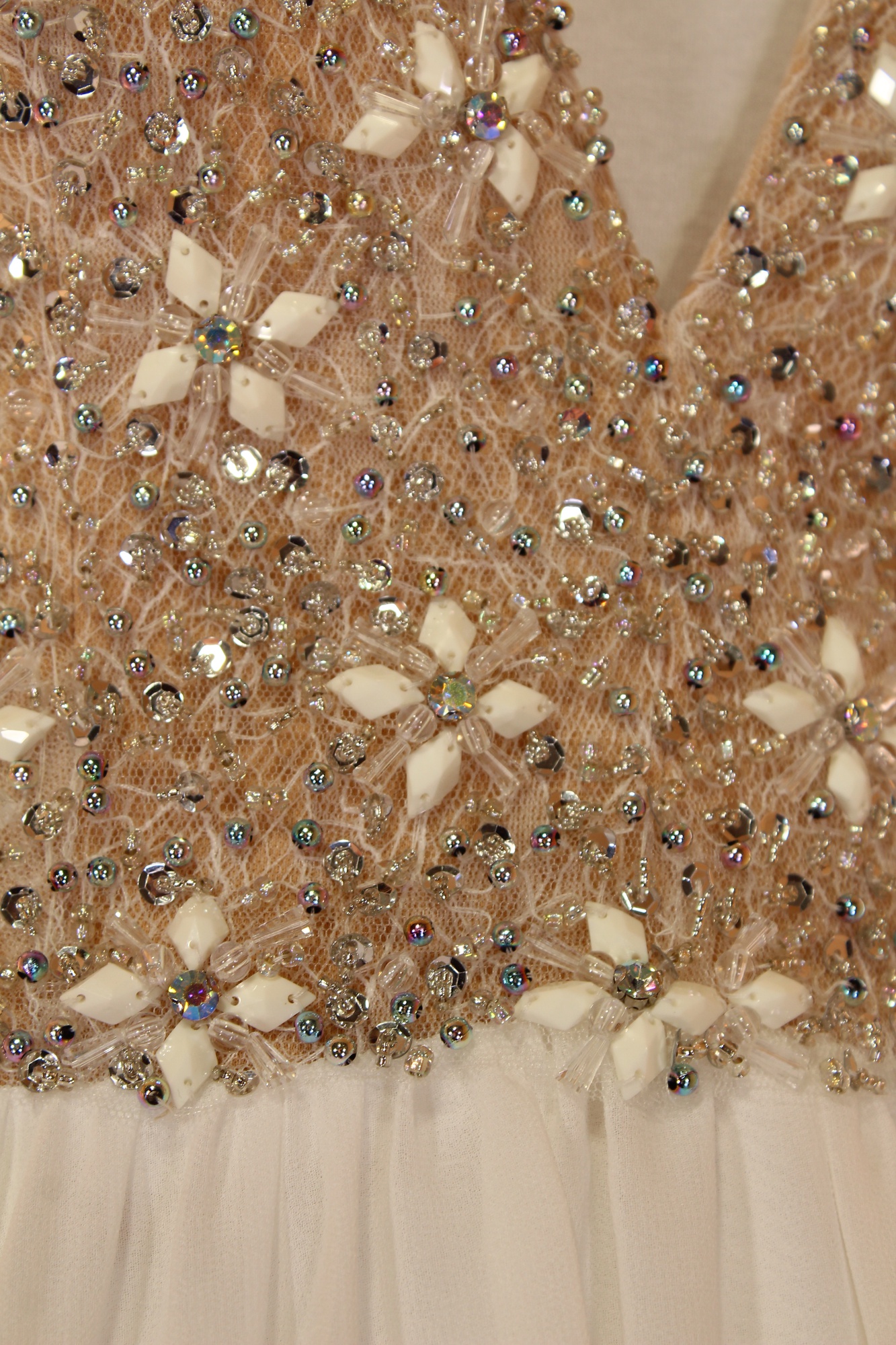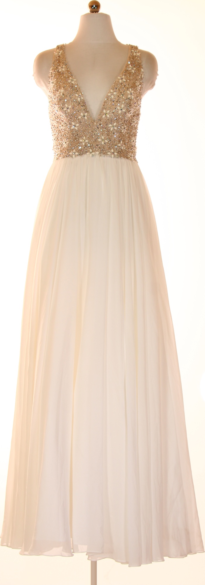 TERANI Dlouhé bílé společenské šaty s hlubokým výstřihem a flitry Vel. 4