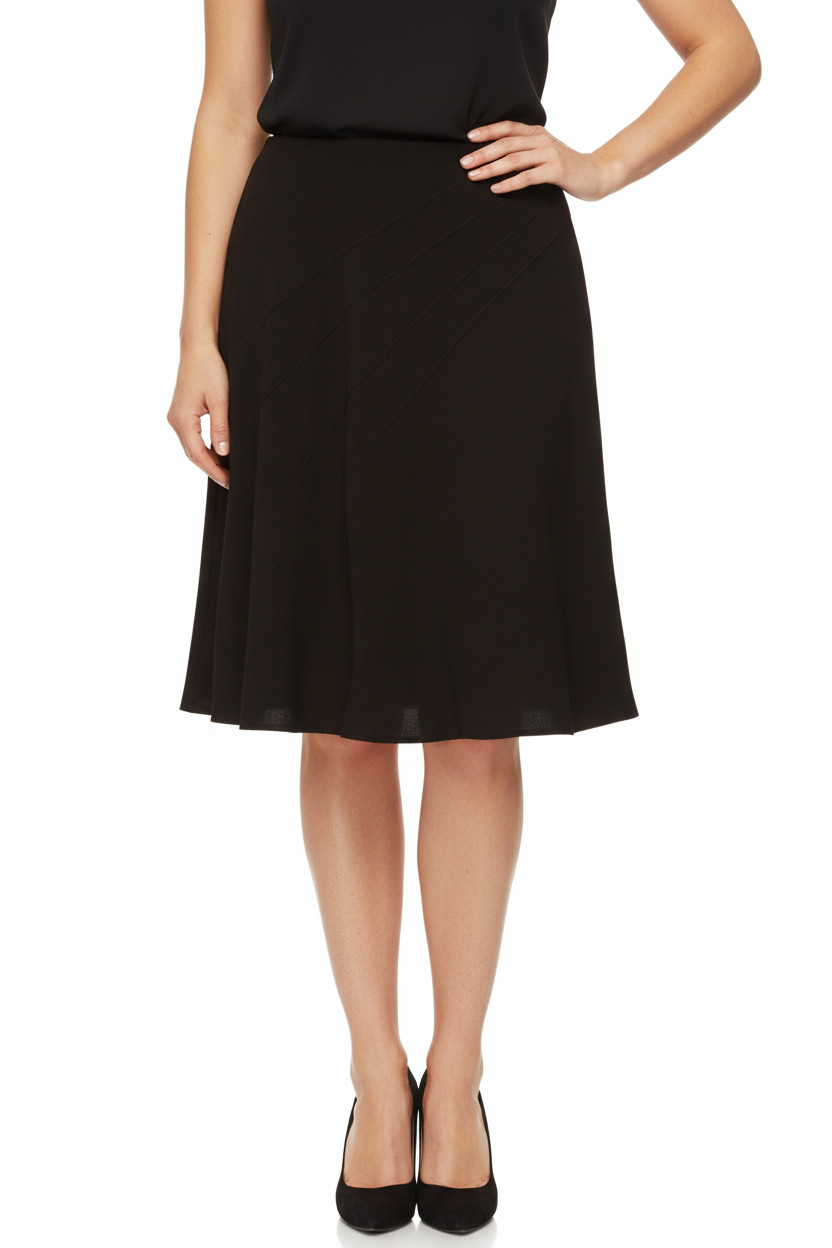 Marks & Spencer Dámská černá áčková sukně ke kolenům elegantní polyesterová Velikost UK 20