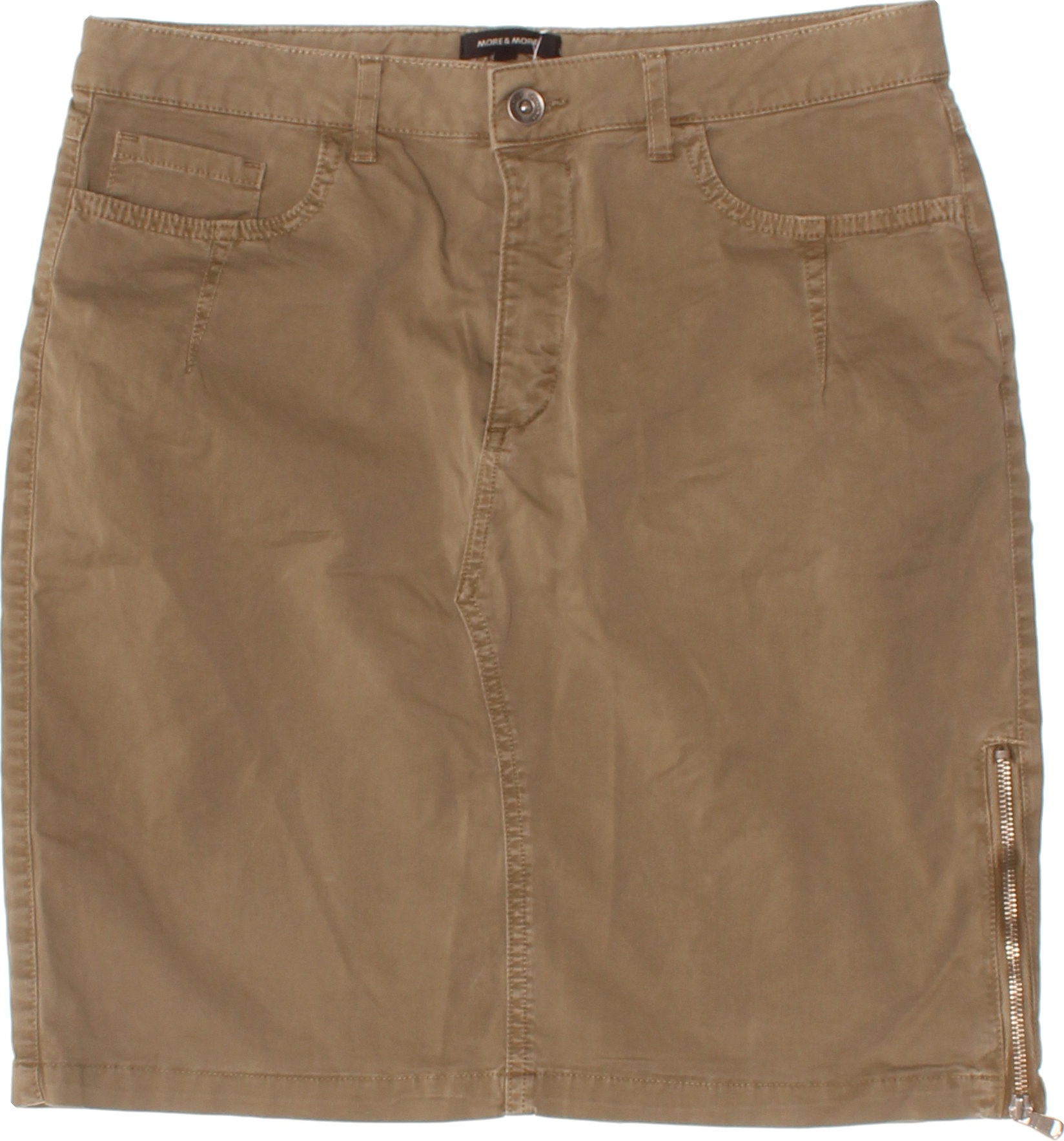 MORE & MORE Bavlněná dámská pouzdrová sukně khaki se zipem rovná krátká Vel. 28