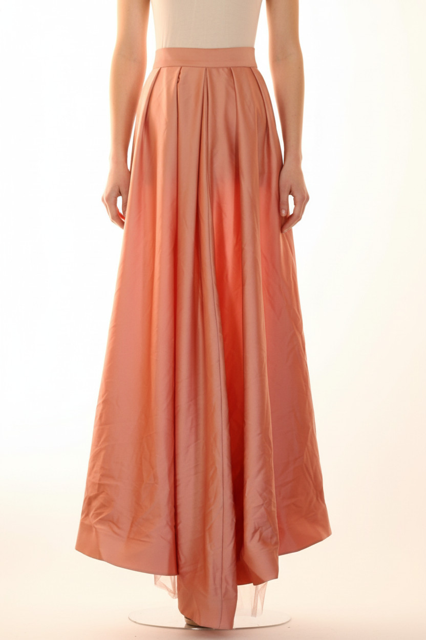 Dlouhá růžová plisovaná společenská sukně s vysokým pasem Vel. 42