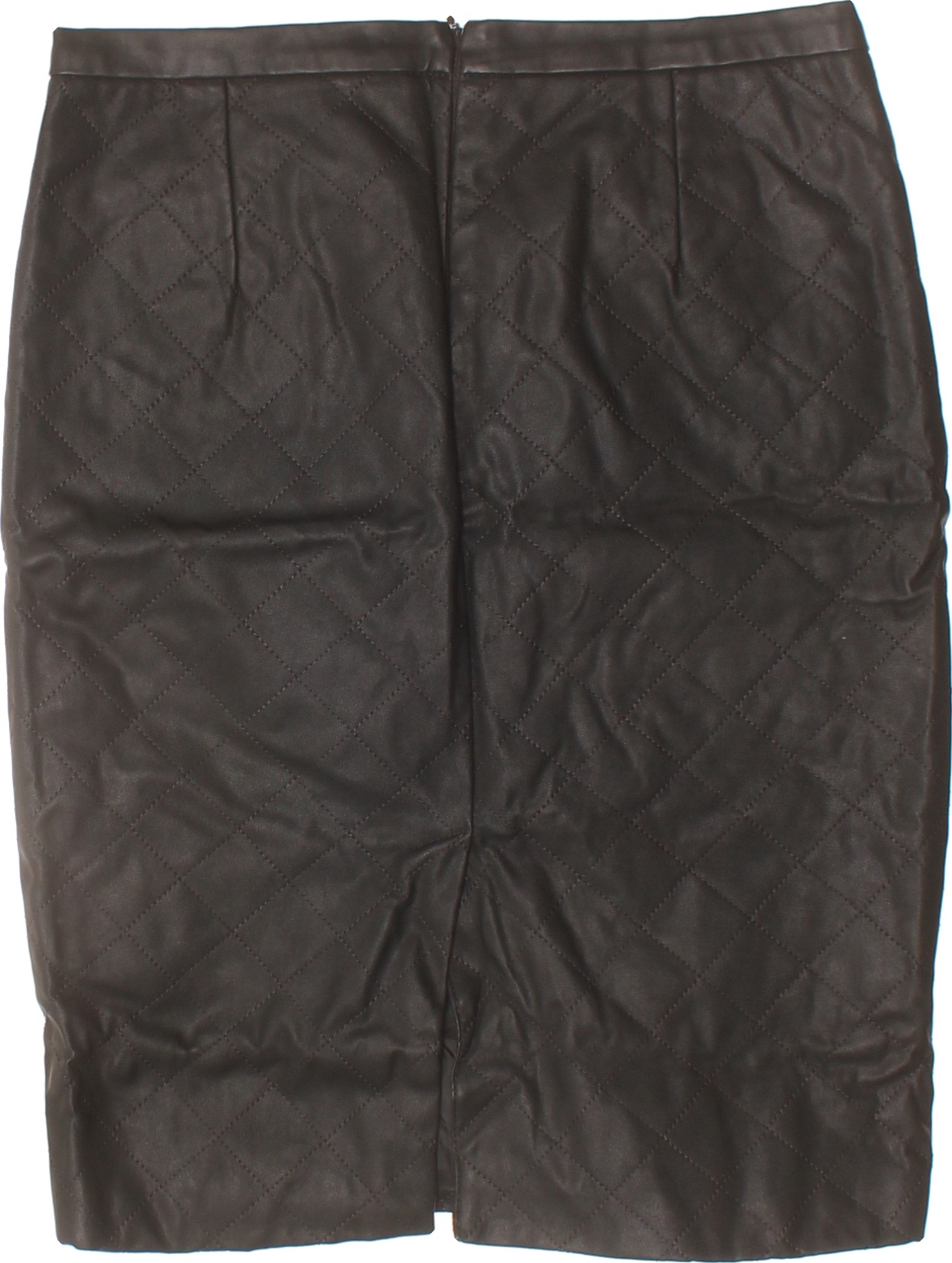 PROMISS Dámská prošívaná kožená pouzdrová sukně ke kolenům hnědá se zipy Velikost 36