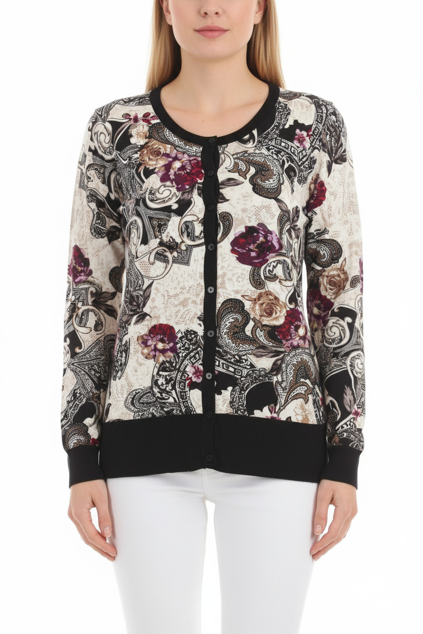 Paola Dámský viskózový kardigan vzorovaný květinový elegantní propínací jarní podzimní Vel. 40