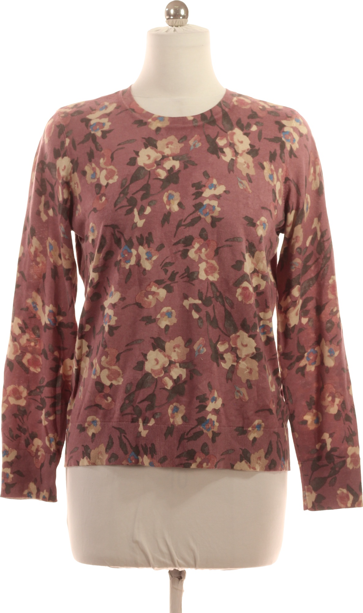 Laurel Dámský růžový vzorovaný květinový pulovr dlouhý rukáv lehký basic Vel. l