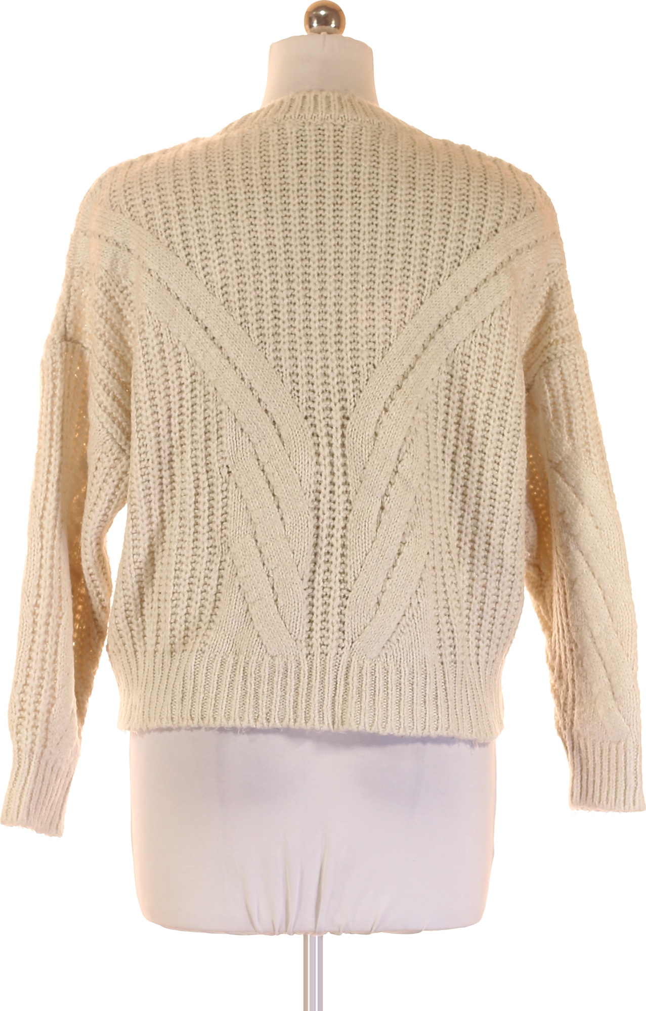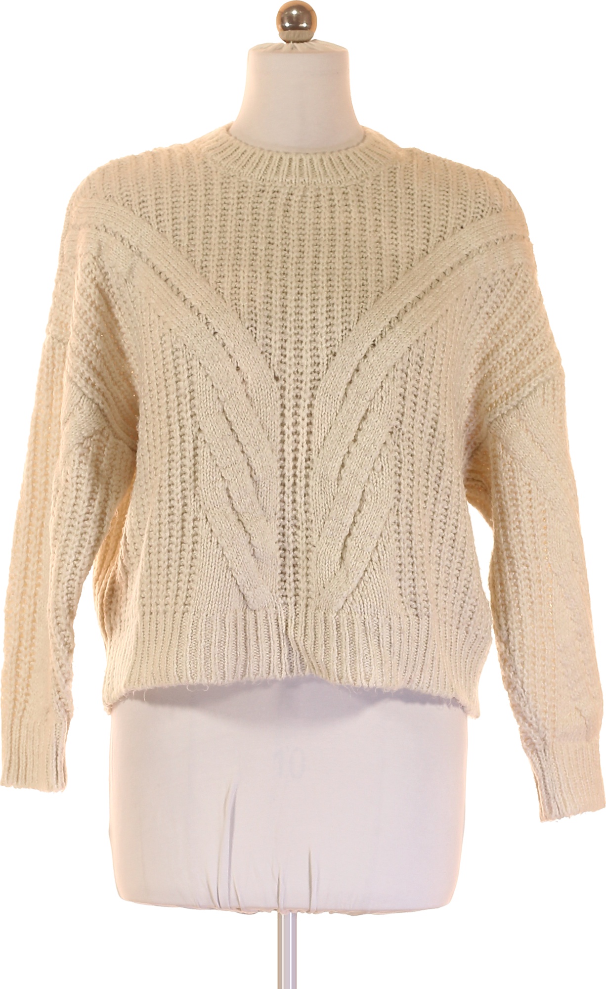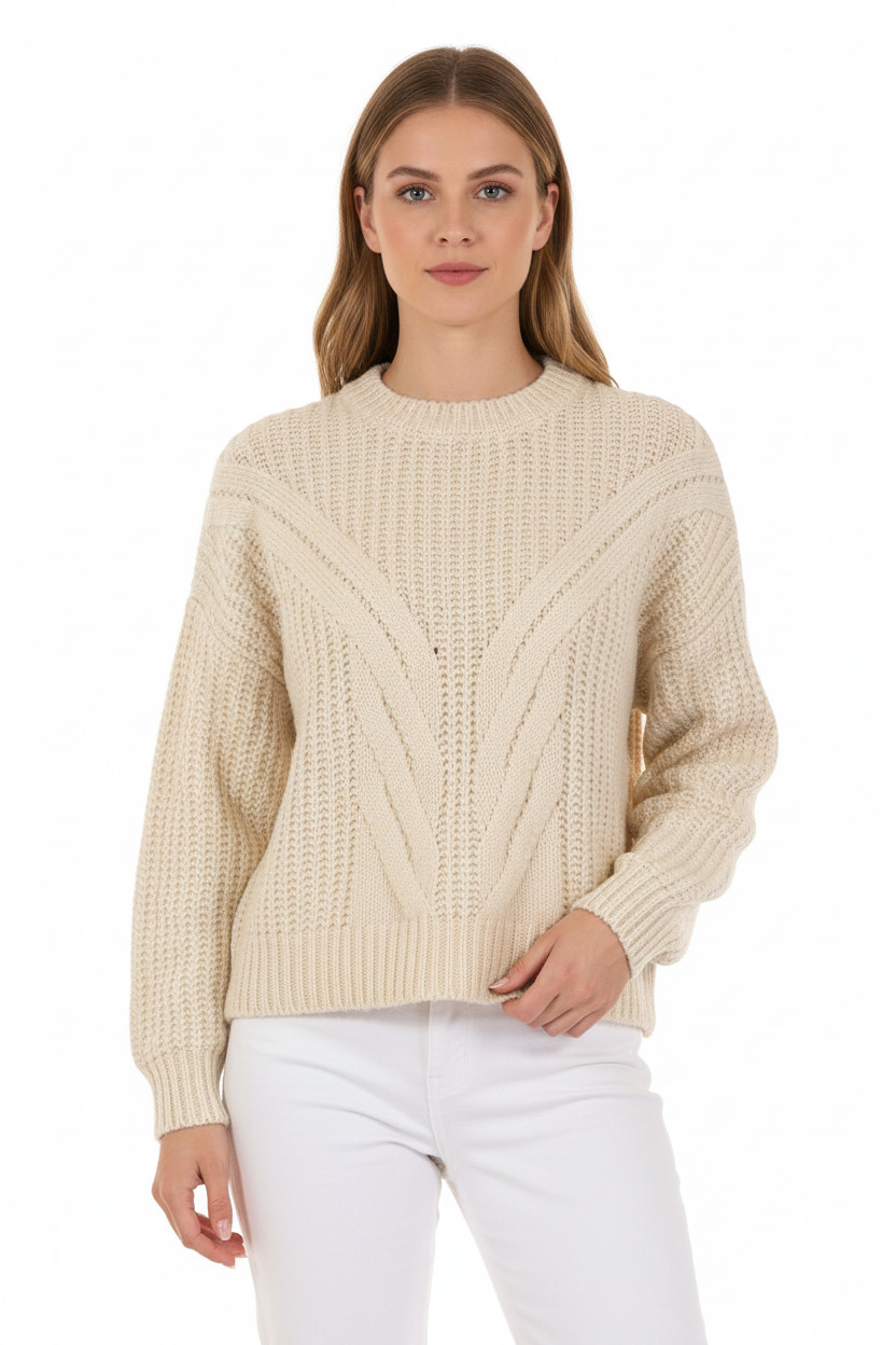 MAVI Dámský krémový acrylový hrubě pletený pulovr copánkový vzor podzimní Vel. M