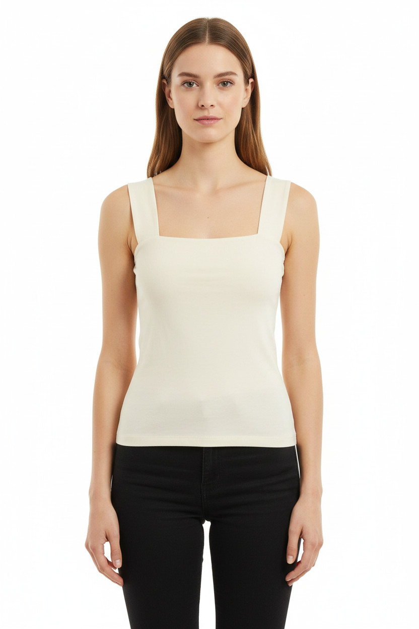 Dámské tílko bez rukávů béžové jednobarevné basic crop top Vel. 38