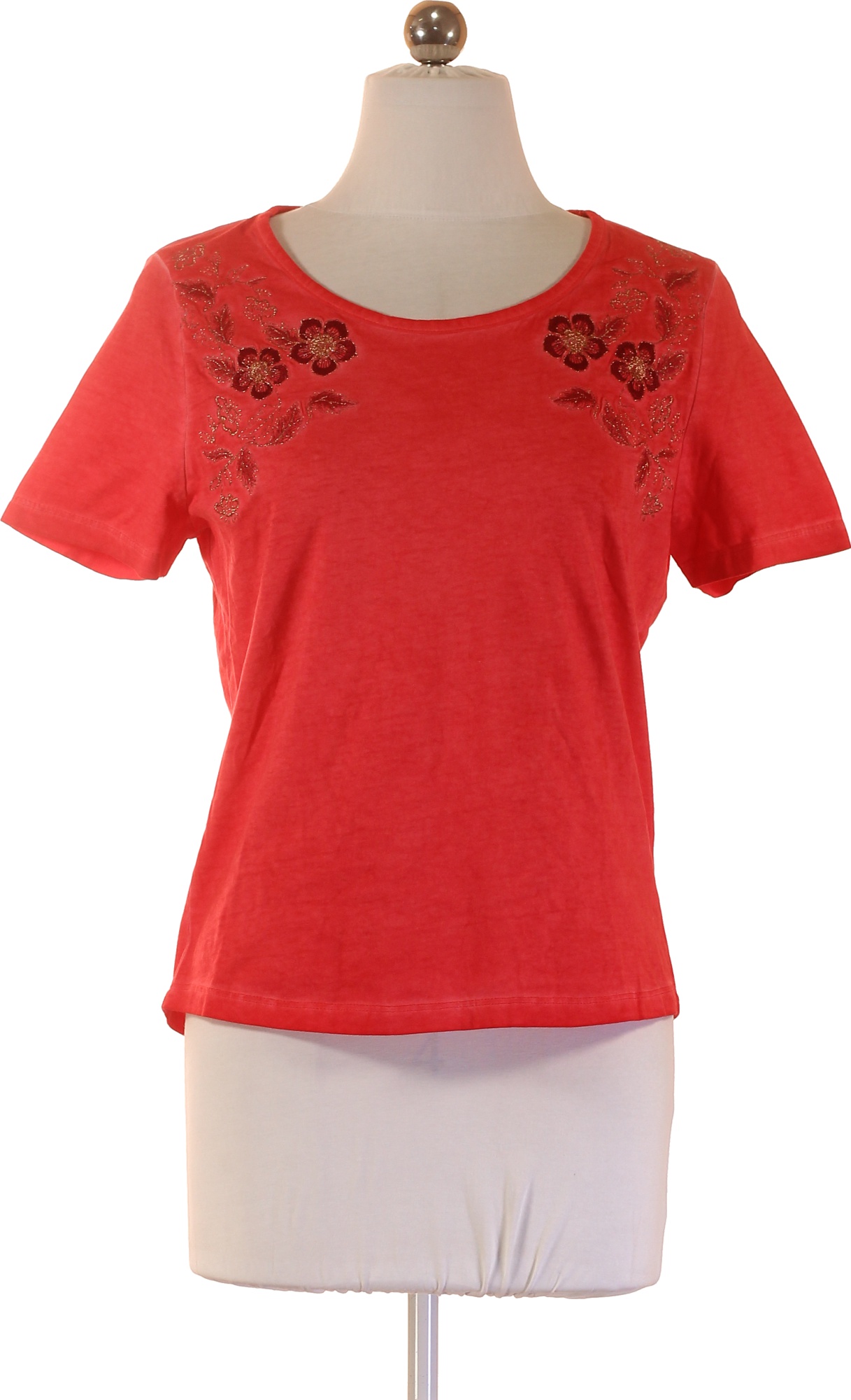 COLLECTION Dámské tričko s krátkým rukávem a výšivkou červené bavlněné Velikost s