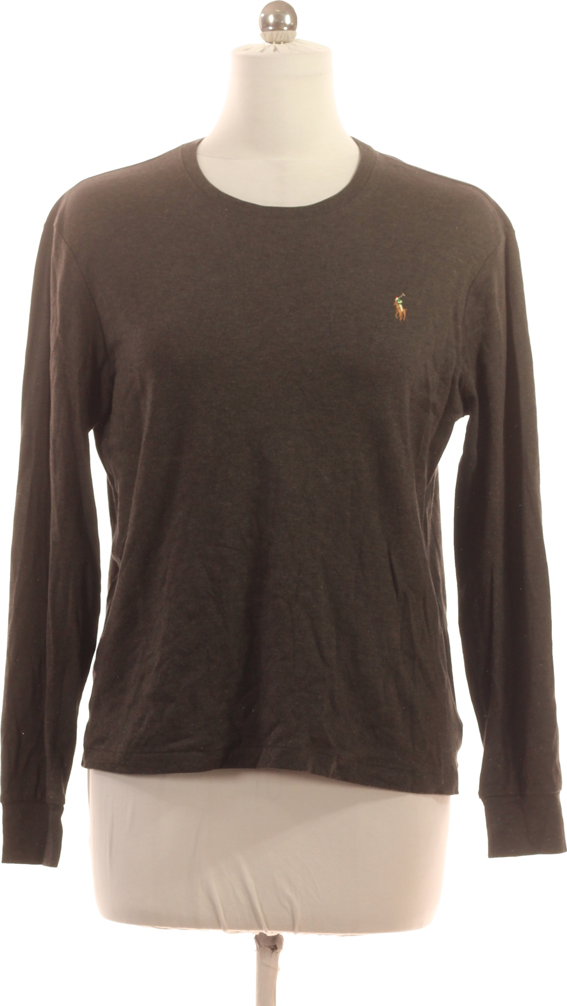 Ralph Lauren Dámské tmavě šedé tričko dlouhý rukáv basic s kulatým výstřihem s výšivkou Vel. M