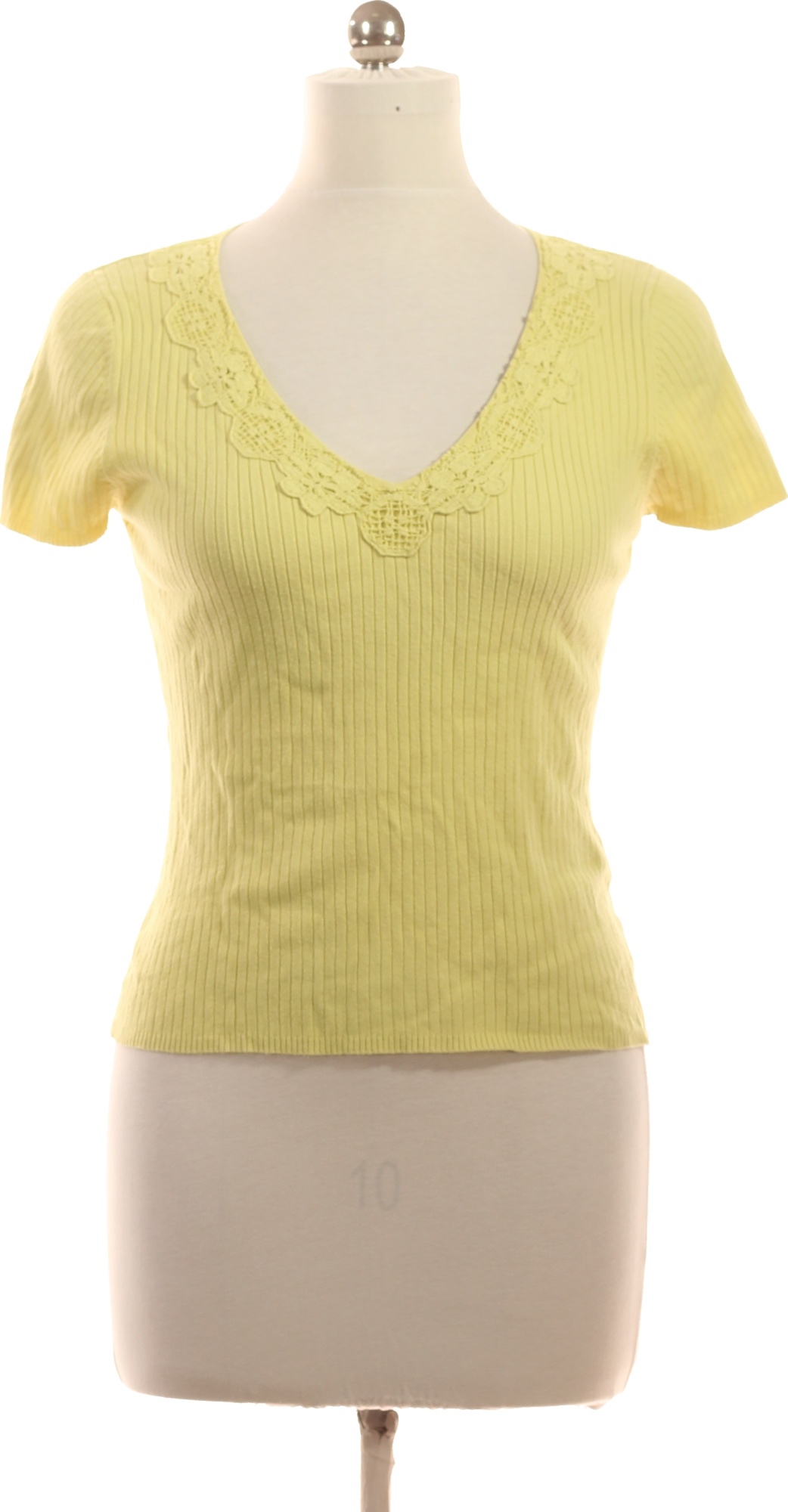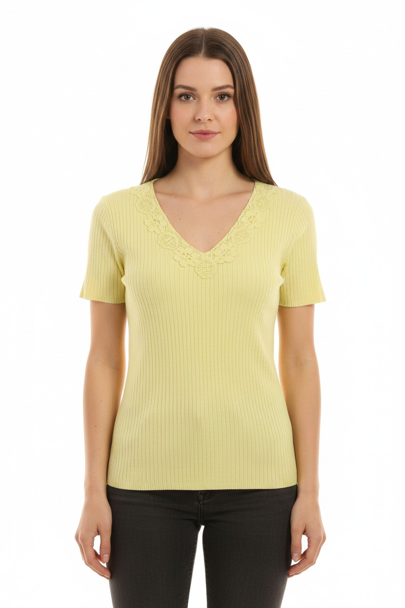Next Dámské tričko žluté krátký rukáv bavlna krajka výstřih Vel. EU L