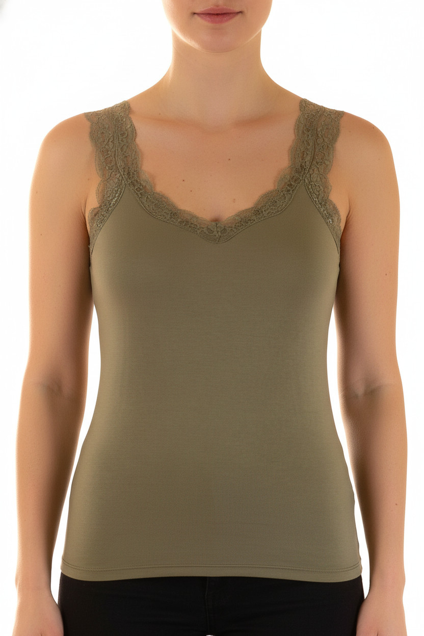 PIECES dámské tílko bez rukávů zelené krajka viskóza Velikost EU L