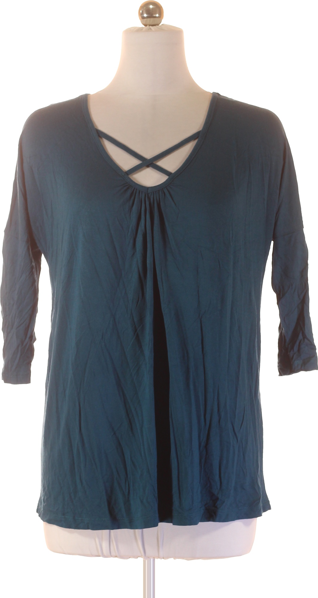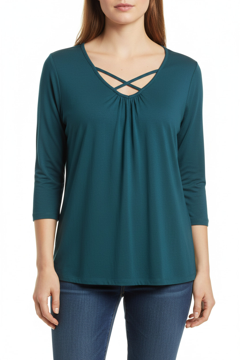 BODY FLIRT Dámské tričko modrozelené s tříčtvrtečním rukávem a křížením výstřihu Vel. 40-42