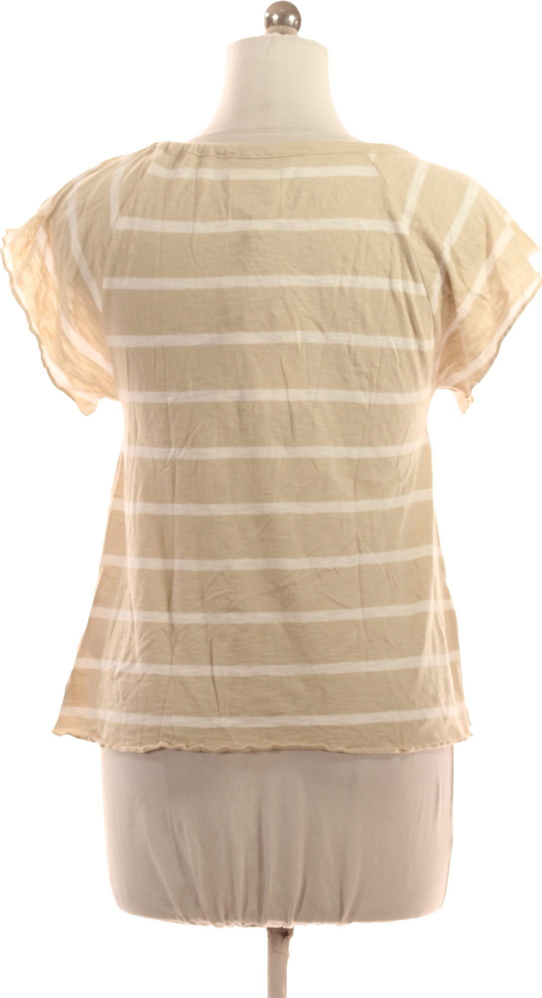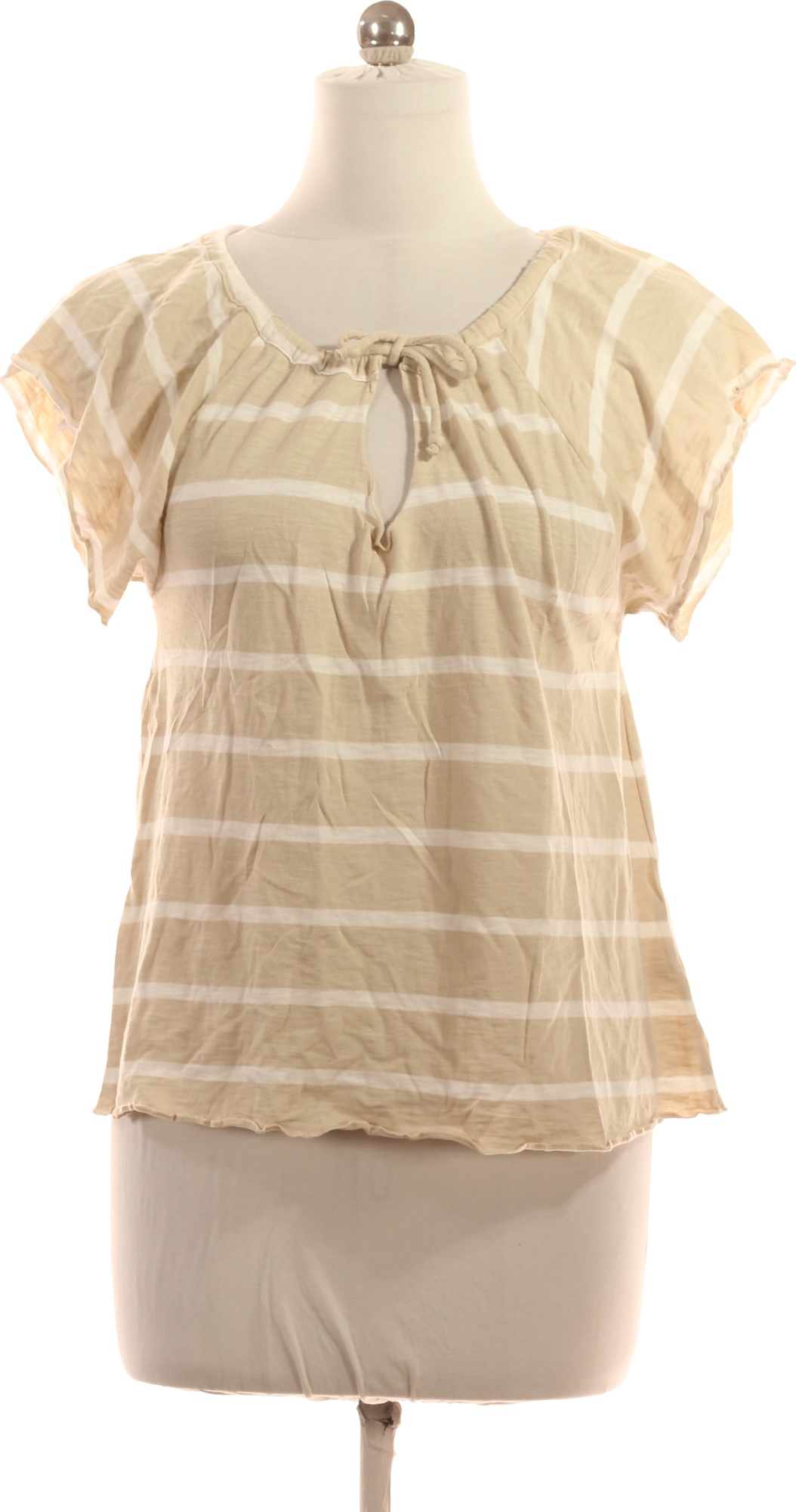 Dámské Bavlněné Modalové Tričko Béžové Pruhované Krátký Rukáv Letní Vel. M