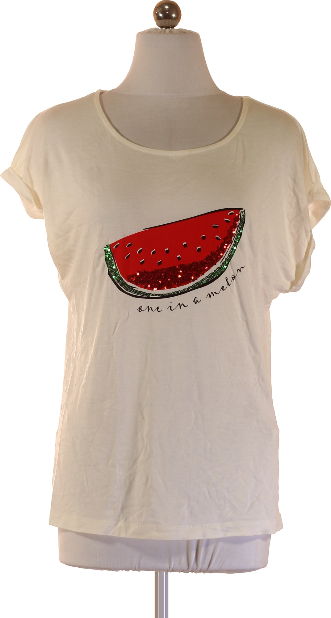Dámské tričko s krátkým rukávem a potiskem melounu s flitry Vel. 34