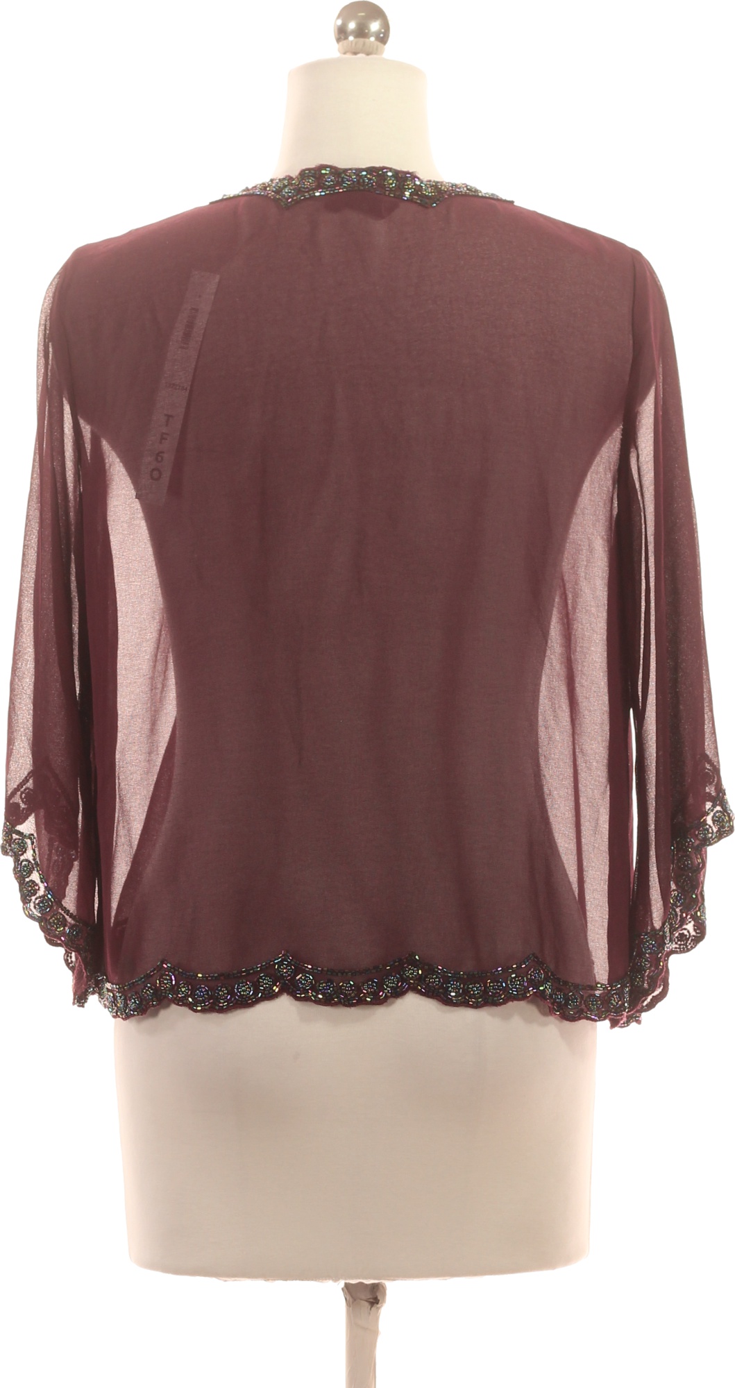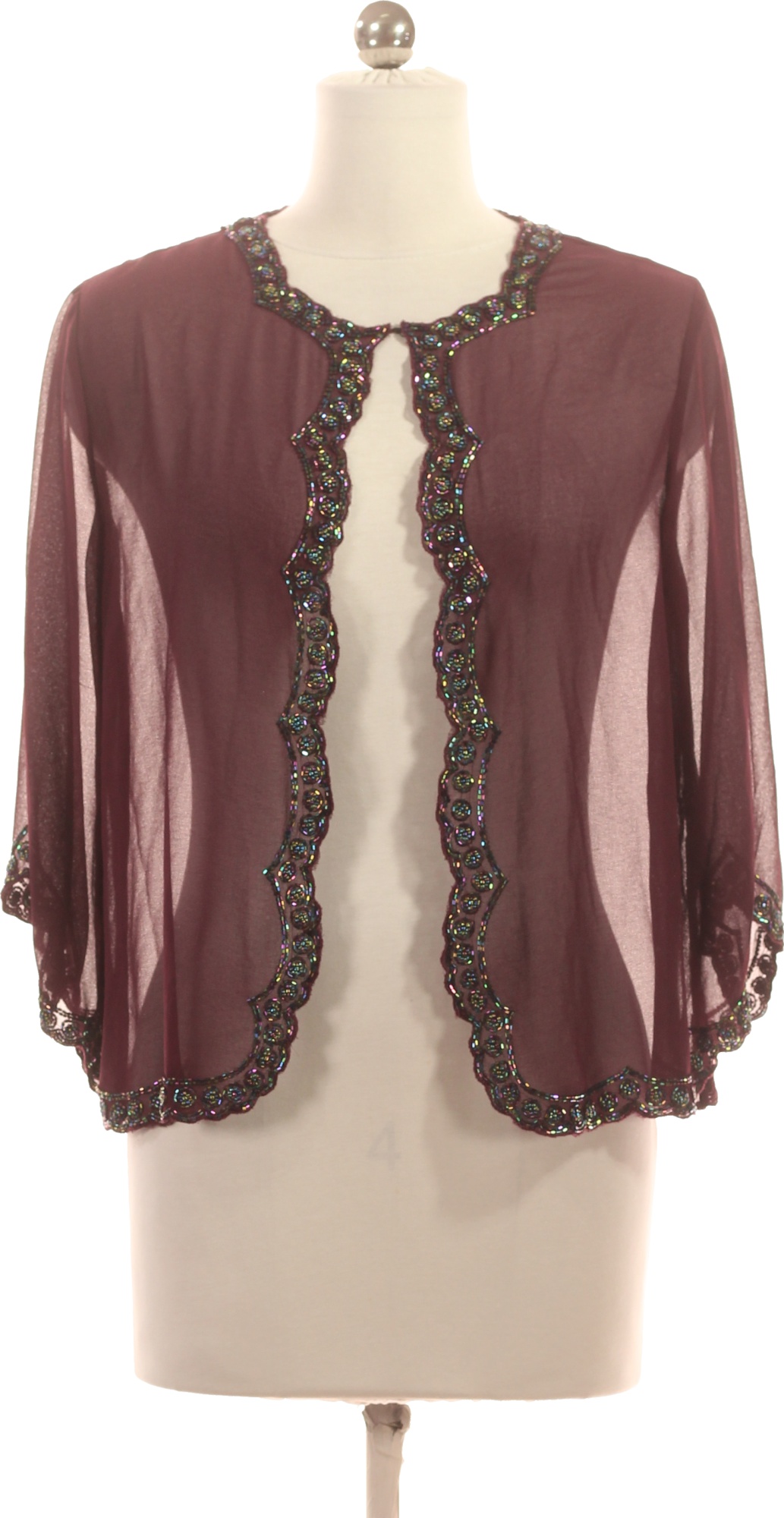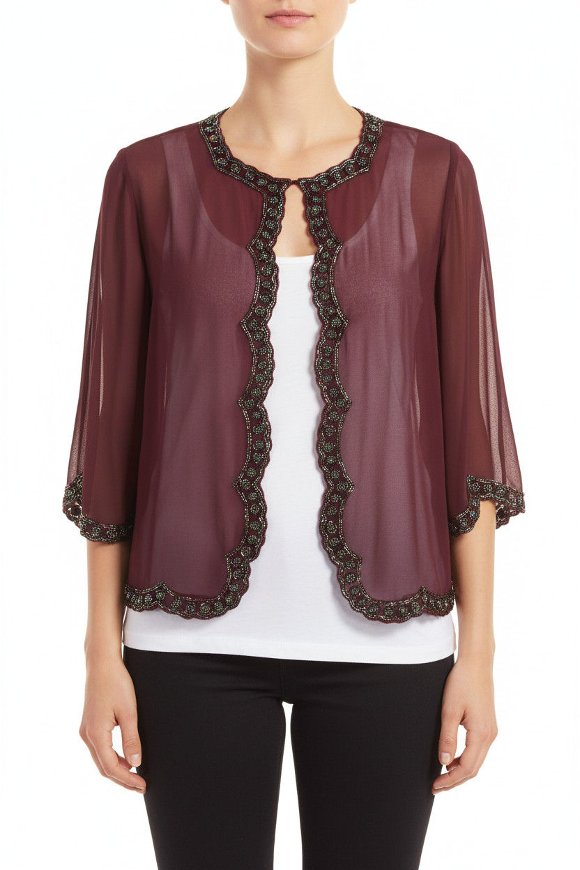 Jkara Vínové průsvitné bolerko s korálkovou aplikací elegantní Velikost M