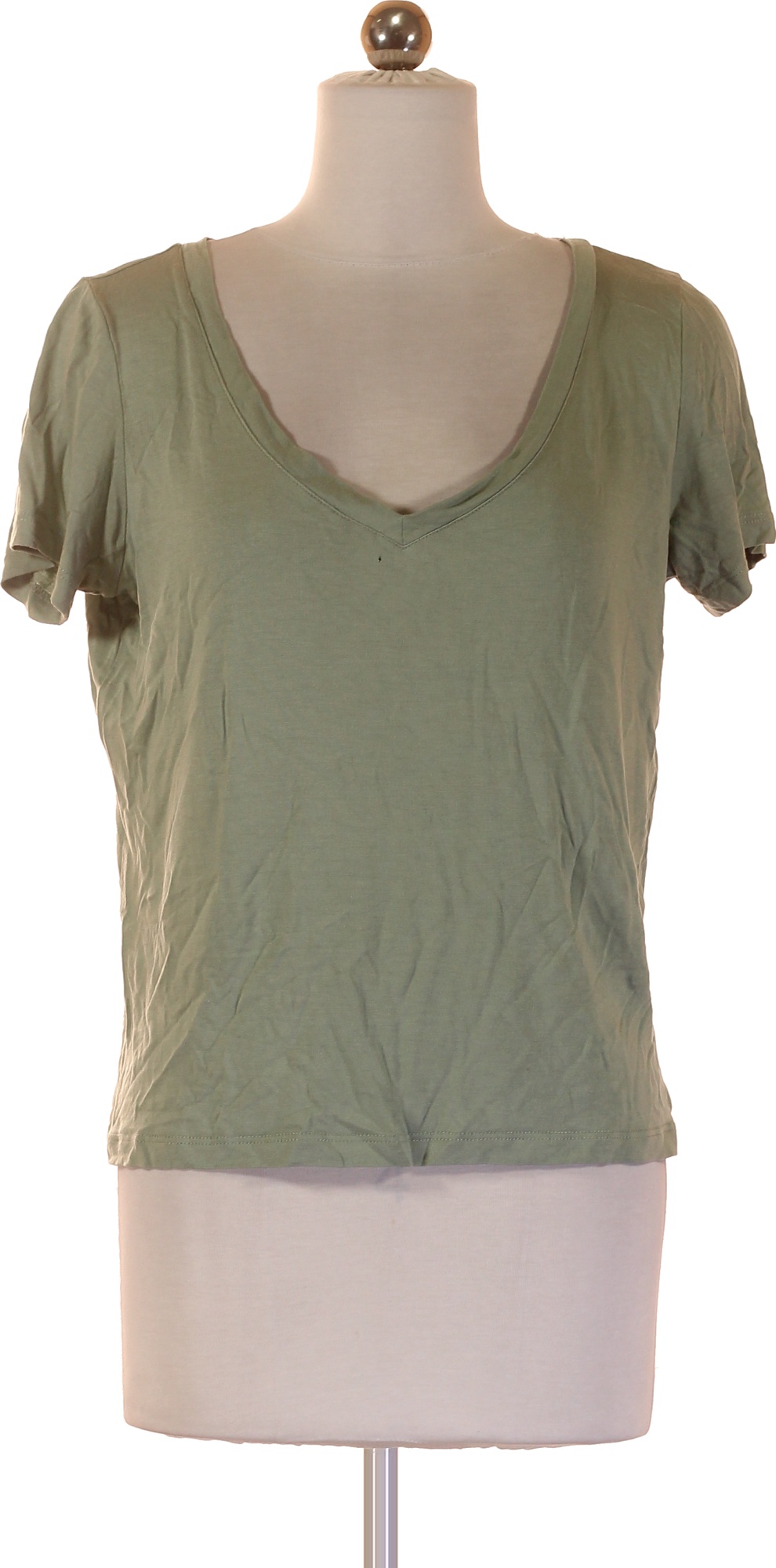 LAWRENCE GREY Zelené tričko s krátkým rukávem a hlubokým výstřihem basic Vel. XS