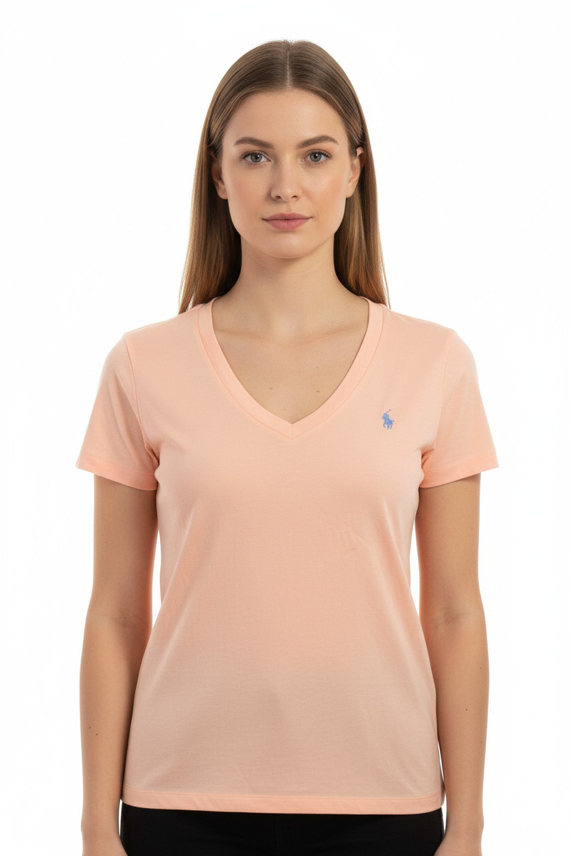 Ralph Lauren Dámské tričko s krátkým rukávem a výstřihem do V růžové Vel. M