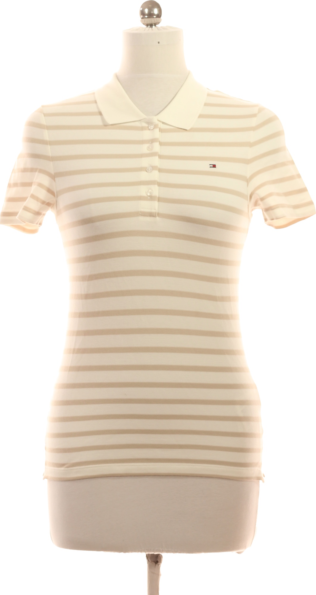 TOMMY HILFIGER Dámské bavlněné pruhované polo tričko s krátkým rukávem Vel. EU M