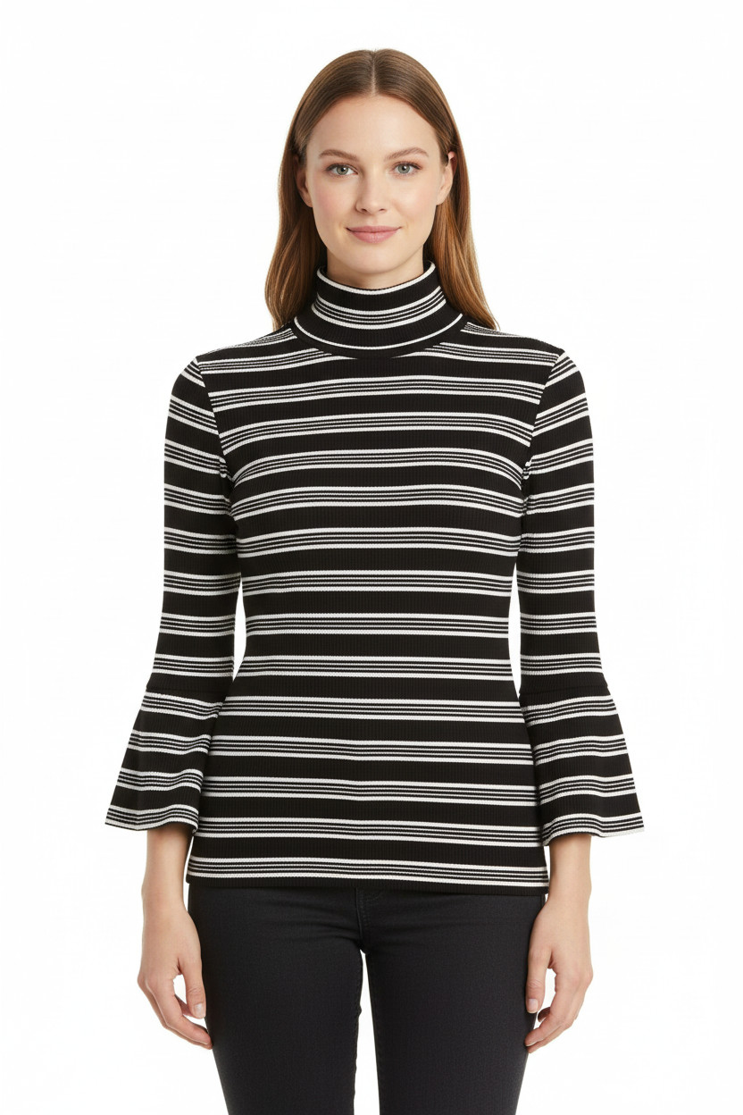 ZARA Dámský žebrovaný rolák s dlouhým rukávem a zvonovými konci pruhovaný Velikost M