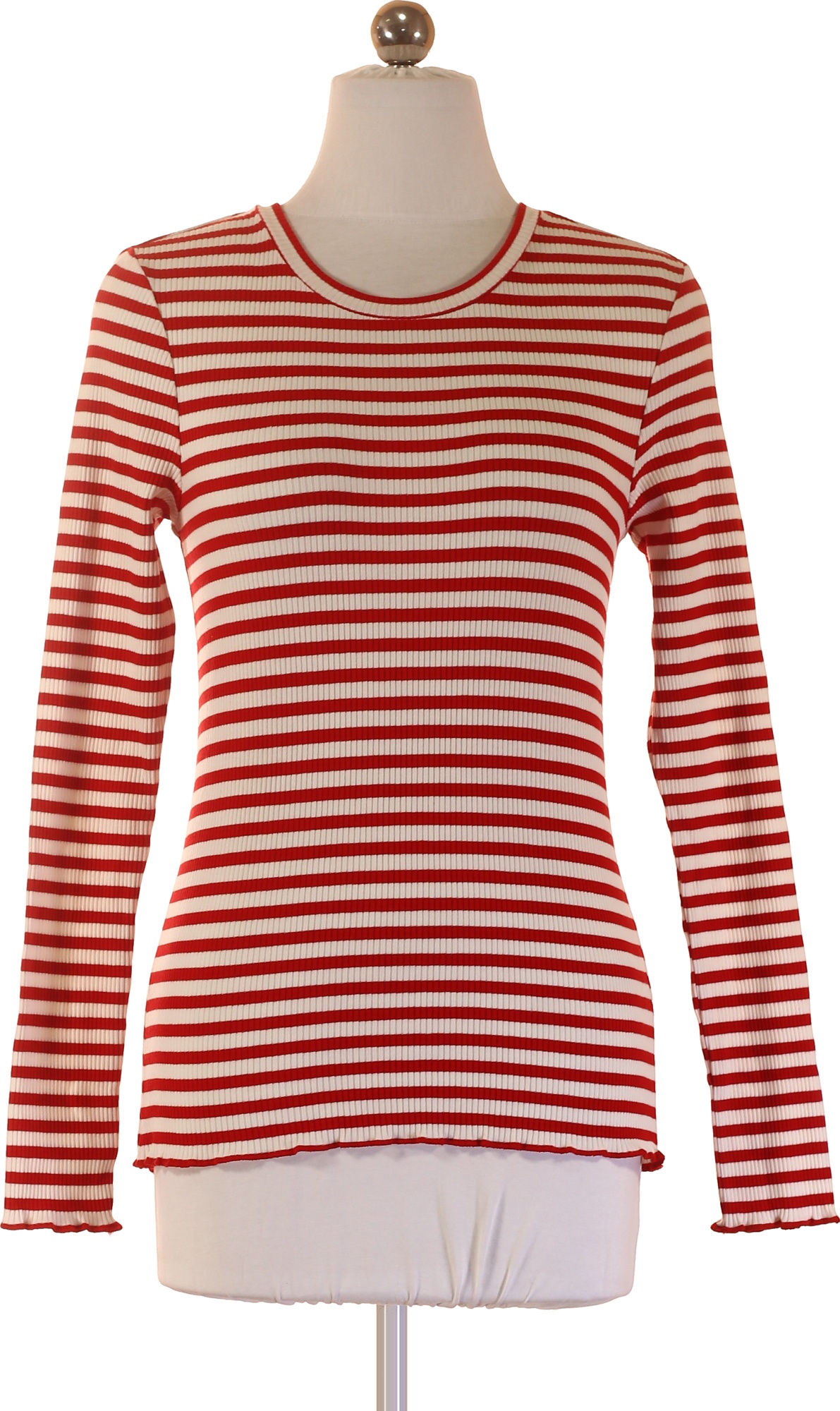 SELECTED Dámské tričko s dlouhým rukávem červené pruhované basic Velikost s