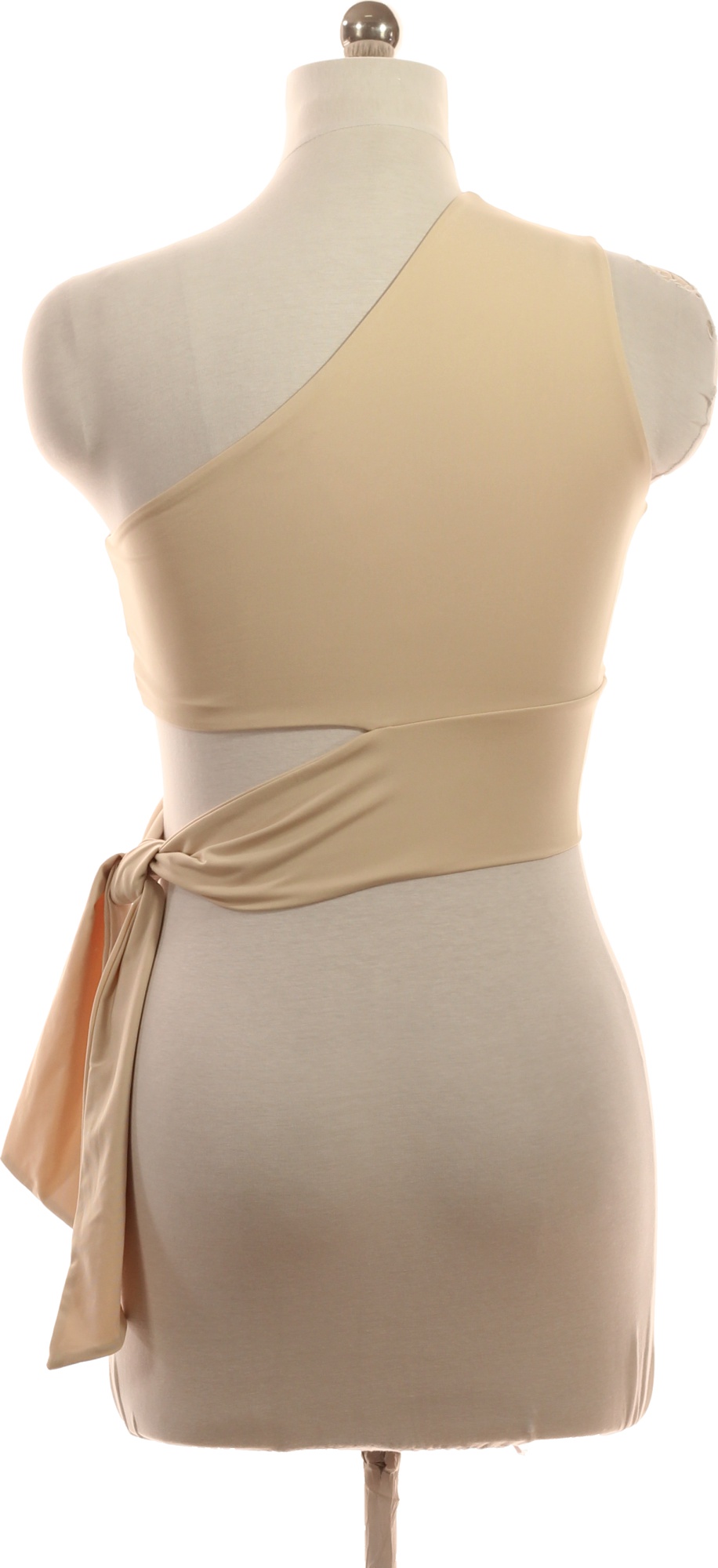 Dámské béžové tričko bez rukávů zavinovací s uzlem asymetrické crop top Vel. 38