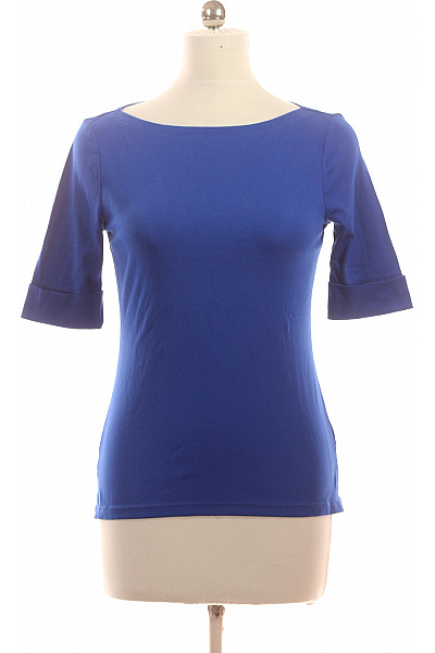 Ralph Lauren Dámské tričko s lodičkovým výstřihem a krátkým rukávem modré bavlněné basic Vel. M