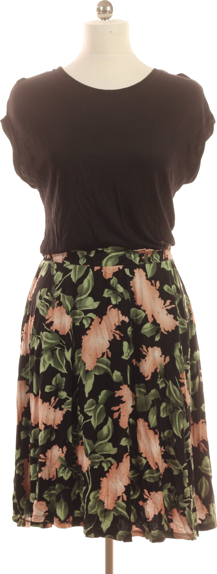 BUFFALO šaty tričkové květované midi černé letní volnočasové Vel. 40