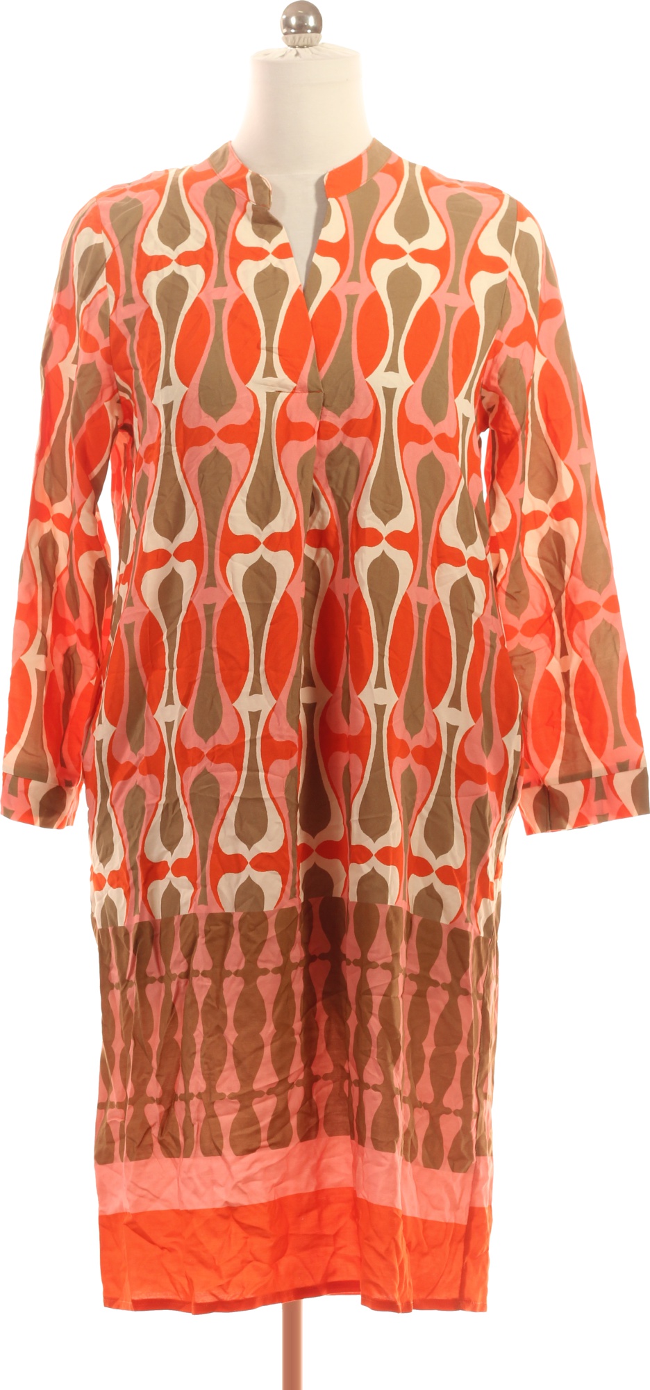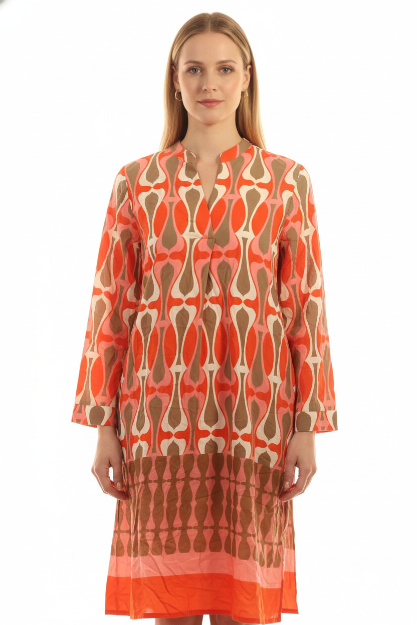 key largo Dámské tunikové šaty s dlouhým rukávem retro oranžové vzorované plátěné volné Vel. EU L