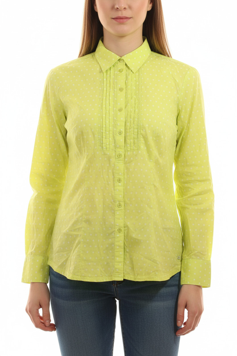 s.OLIVER Dámská bavlněná košile s dlouhým rukávem puntíkovaná žlutá ležérní Velikost 40
