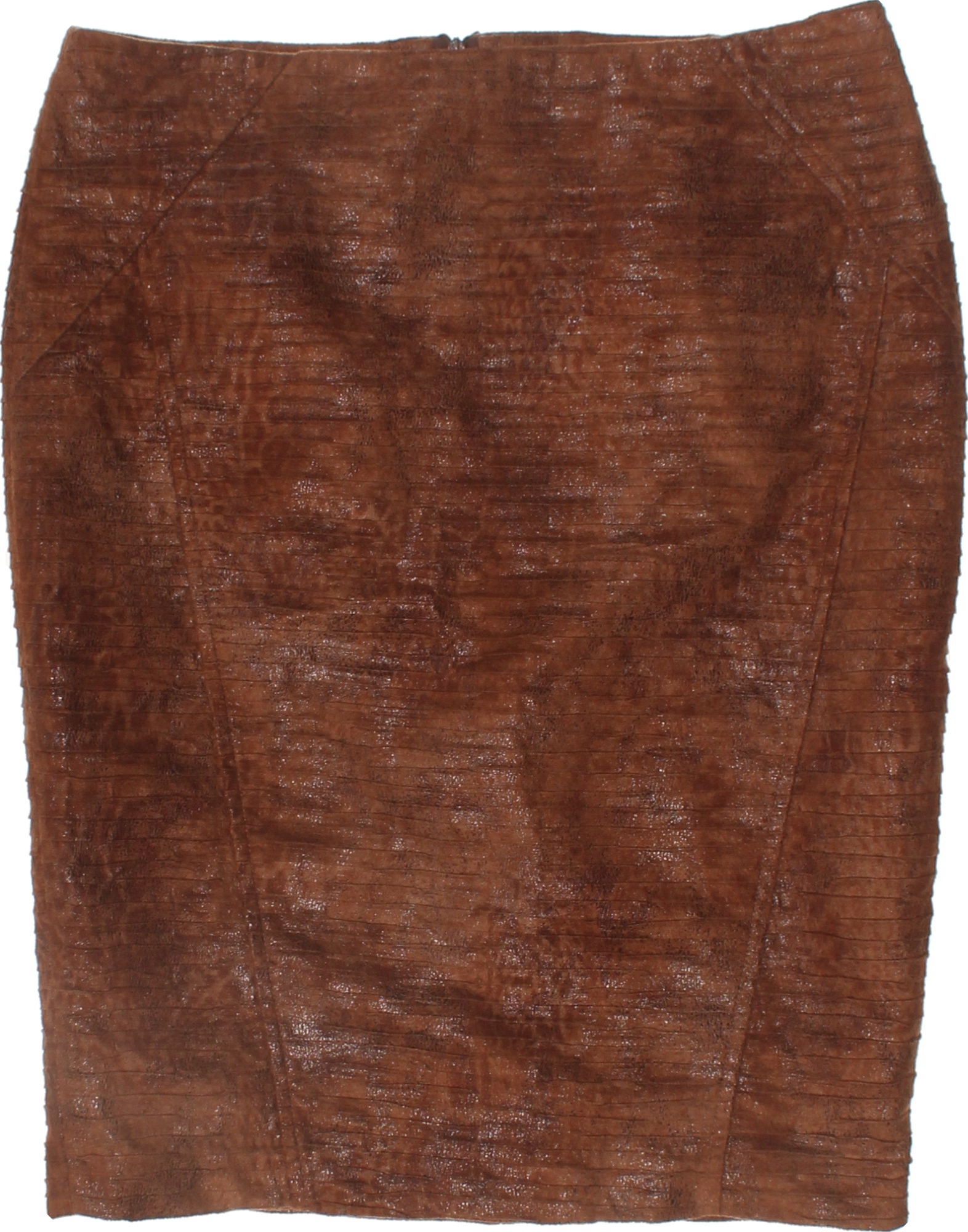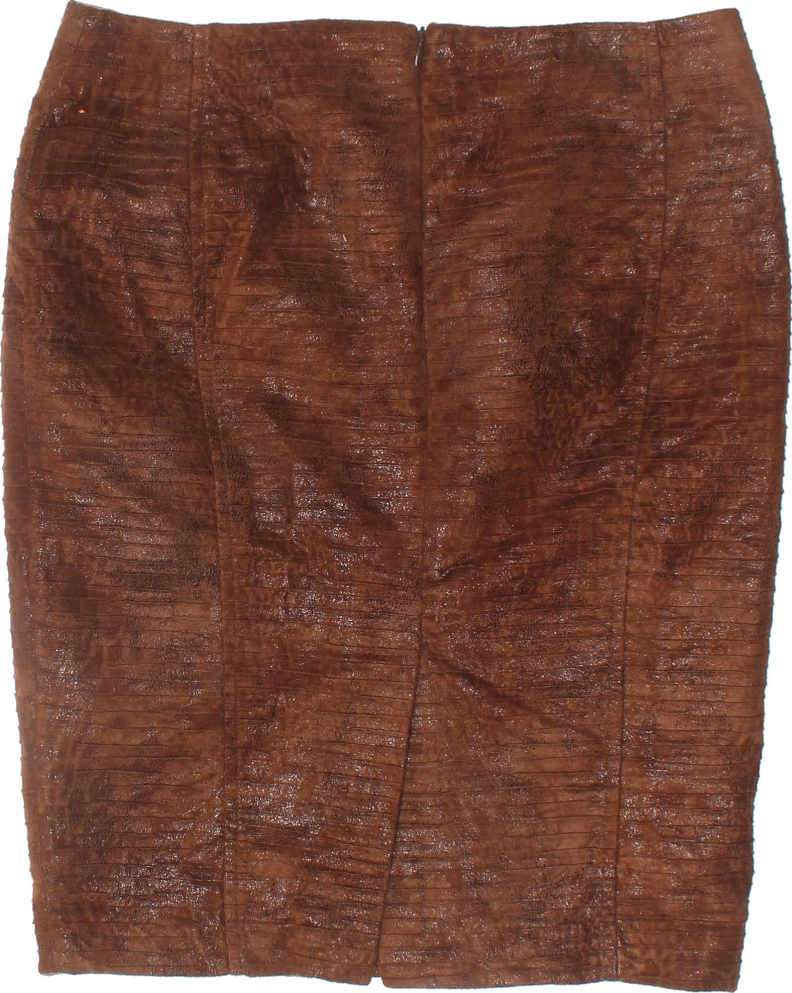 ZARA Dámská pouzdrová polyesterová sukně hnědá vzorovaná lesklá kožená Velikost M